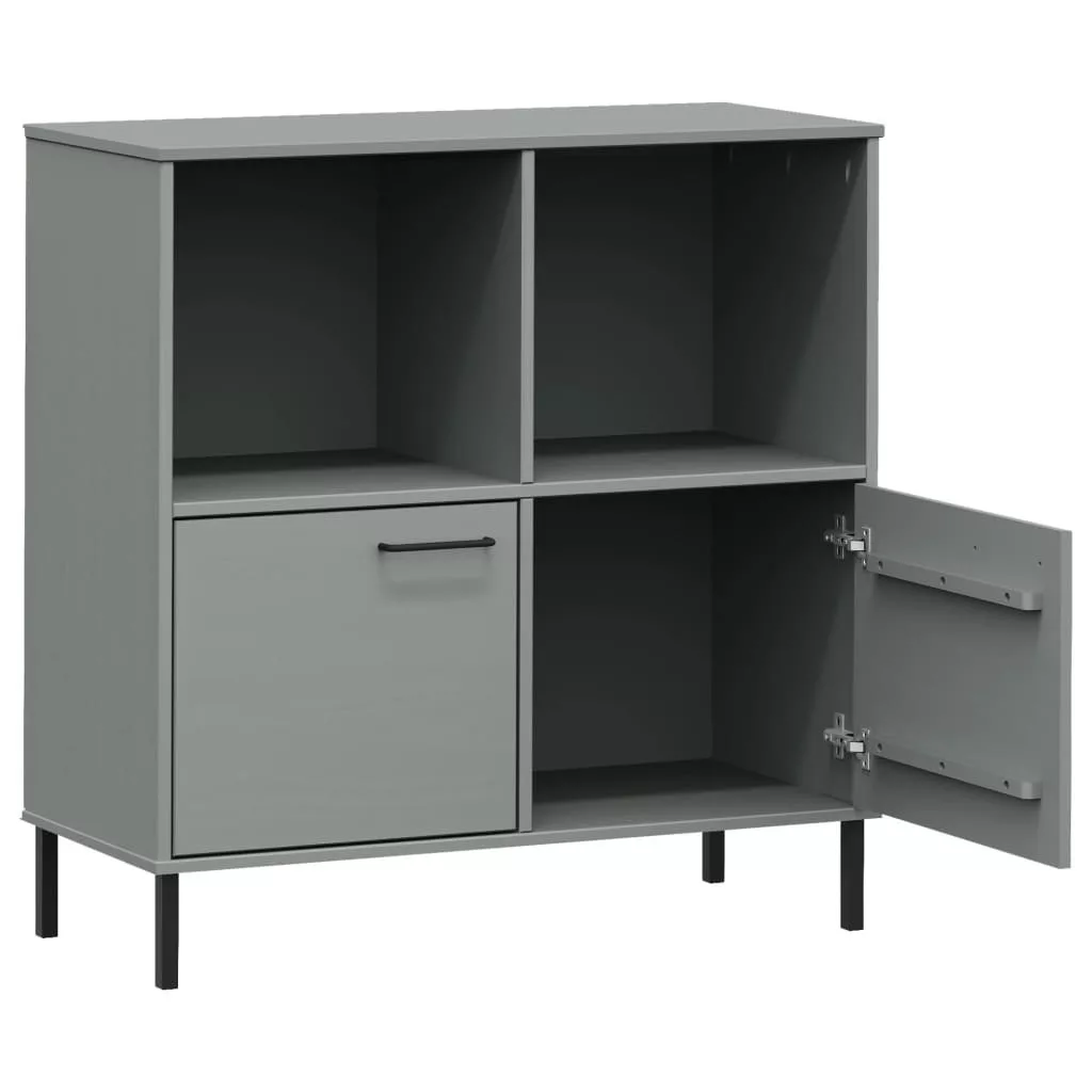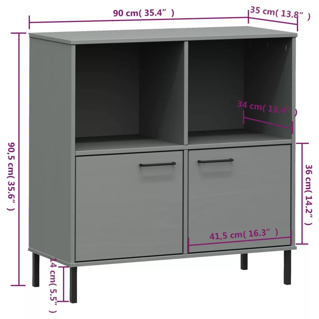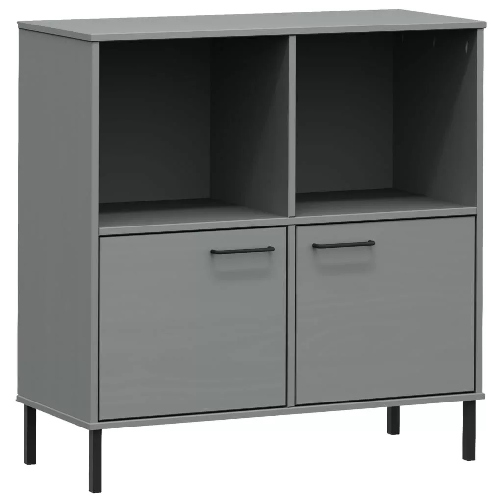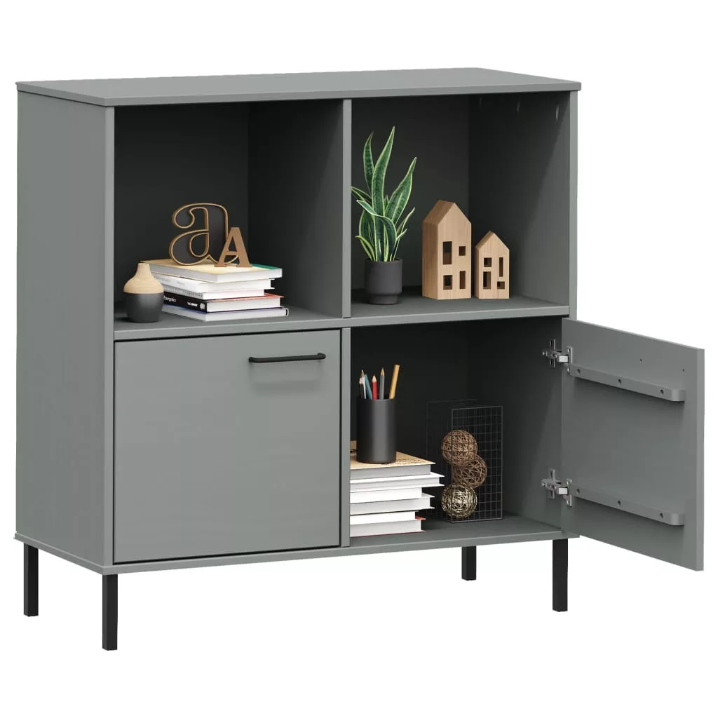 OSLO szürke tömör fa könyvszekrény fém lábakkal 90x35x90,5 cm