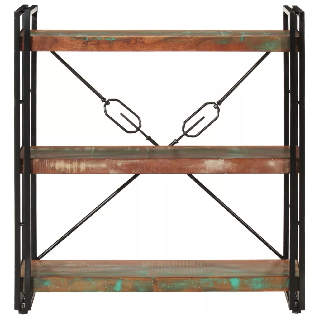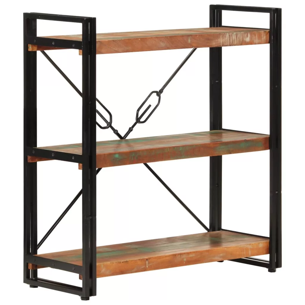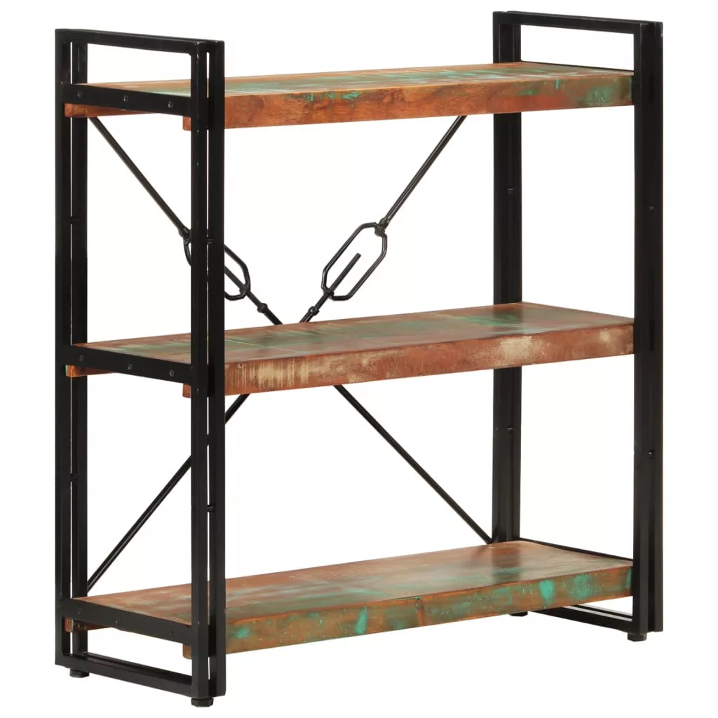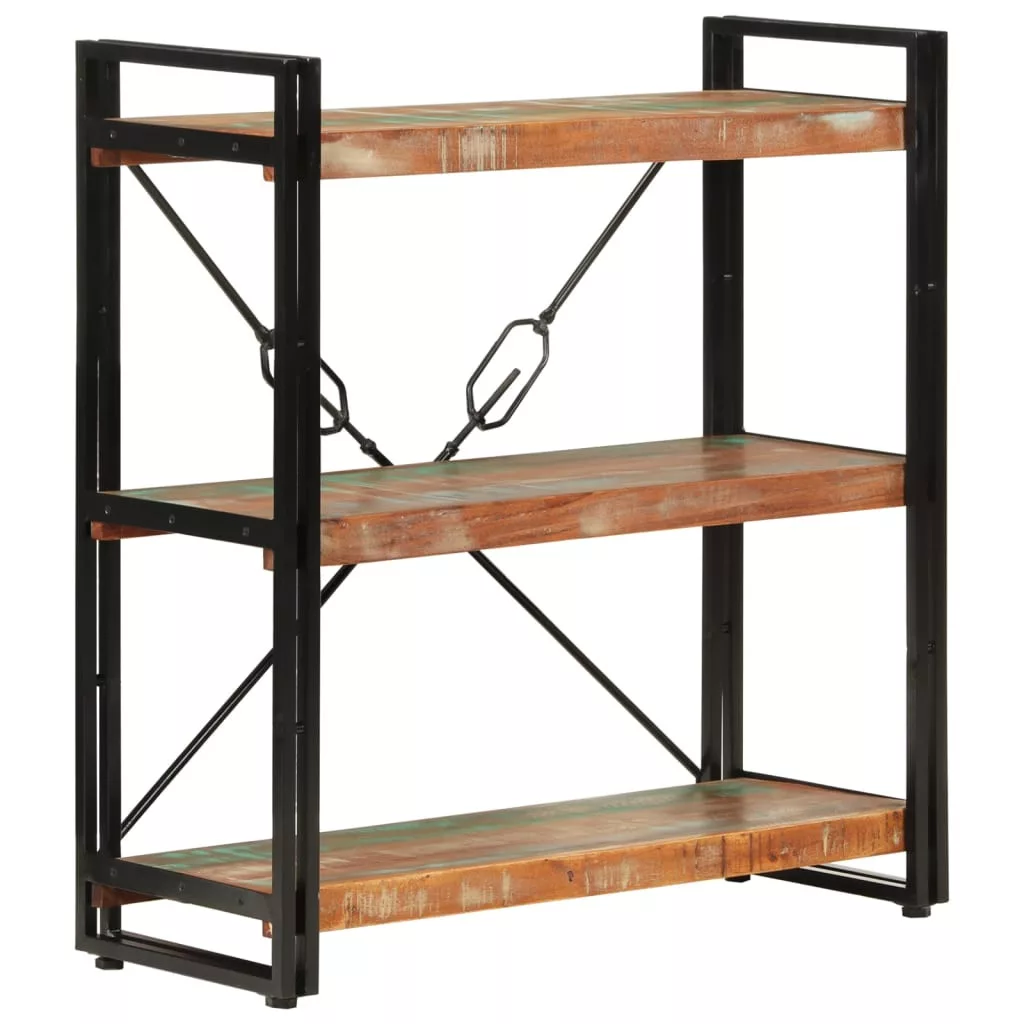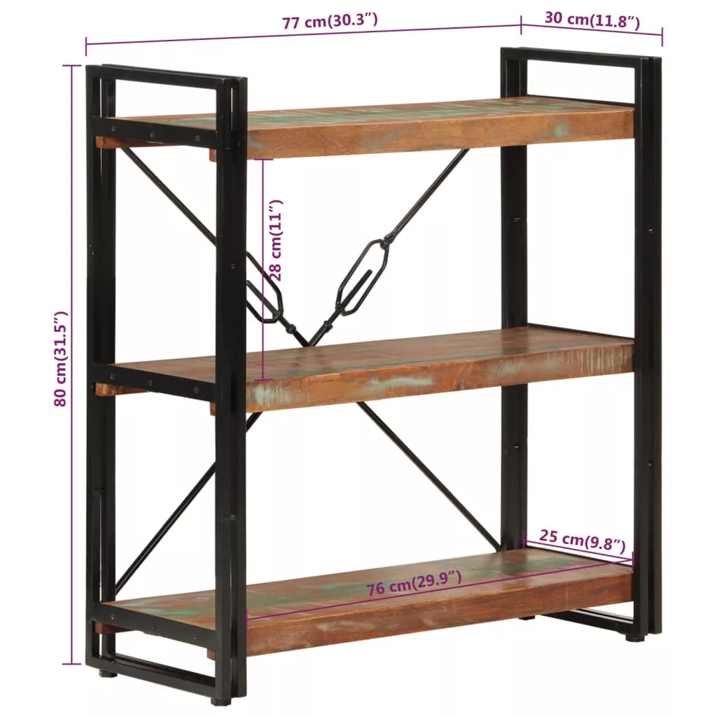 3 szintes újrahasznosított fa és vas könyvespolc 77x30x80 cm