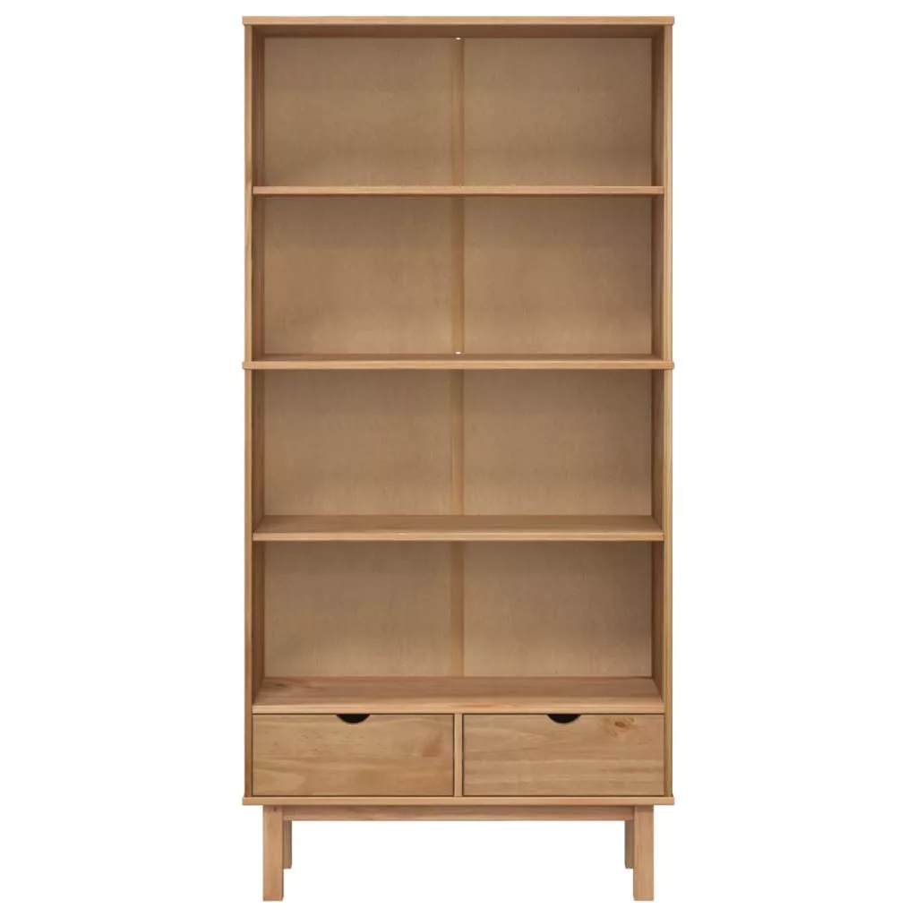 OTTA barna tömör fenyőfa könyvszekrény 2 fiókkal