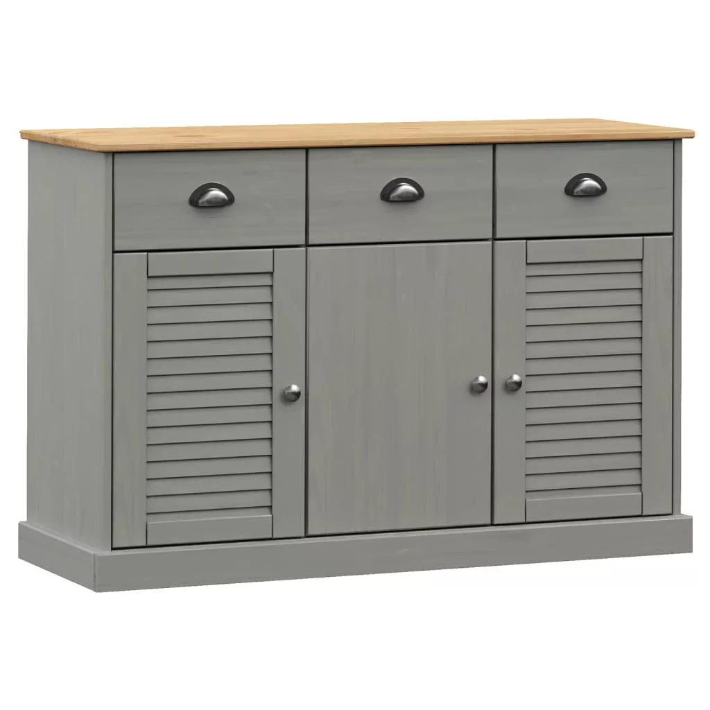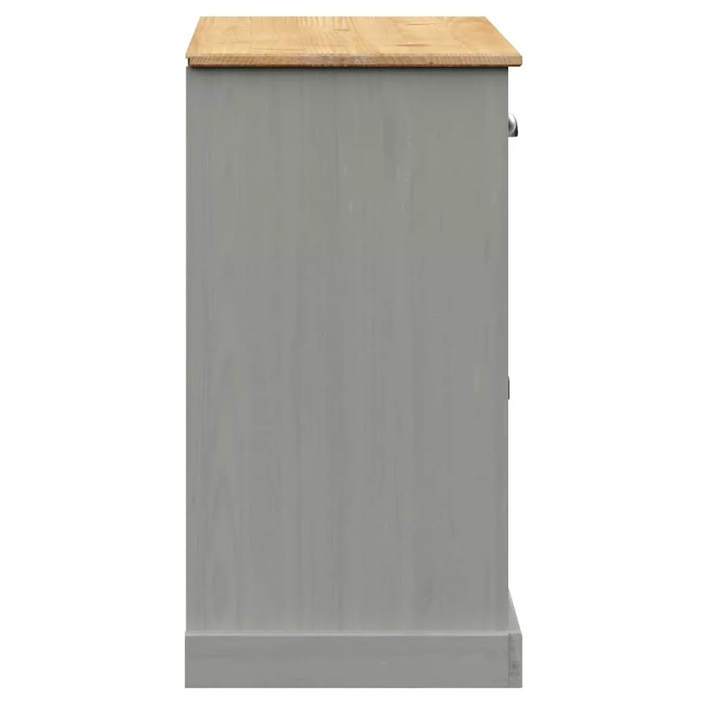 VIGO szürke tömör fenyőfa fiókos tálalószekrény 113x40x75 cm