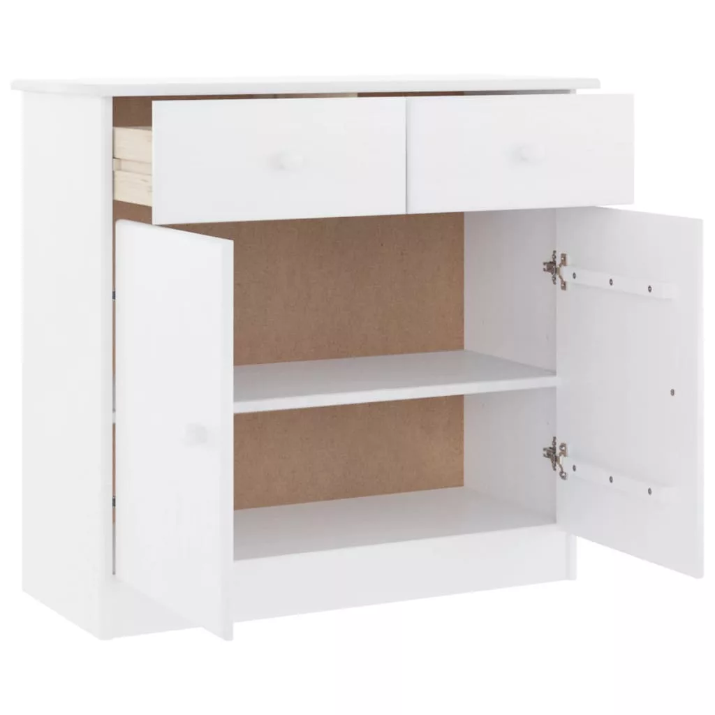 Ez a praktikus fa tálalószekrény elegendő tárolóhelyet biztosít, és a nappali ideális kiegészítője lesz. Tömör fenyőfa: A tömör fenyőfa egy gyönyörű természetes anyag. A fenyőfa egyenes erezetű, a csomók pedig jellegzetes, rusztikus megjelenést biztosítanak az anyagnak. A tömör fenyőfából készült tárolószekrény strapabíró és masszív.Bőséges tárolóhely: A fiókokkal és rekeszekkel ellátott tálalószekrény bőséges helyet kínál különféle mindennapos, alapvető holmijai elérhető közelségben történő, rendezett tárolásához.Fa gombok: A tálalóasztalhoz fa gombok tartoznak, amelyek megkönnyítik az oldalsó szekrény kinyitását és zárását, miközben tovább növelik a szépségét.Könnyen karbantartható: A fa szekrény könnyen tisztítható nedves ruhával, és kevesebb karbantartást igényel. Figyelem:A felborulás elkerülése érdekében ezt a terméket a mellékelt fali rögzítőeszközzel kell használni.