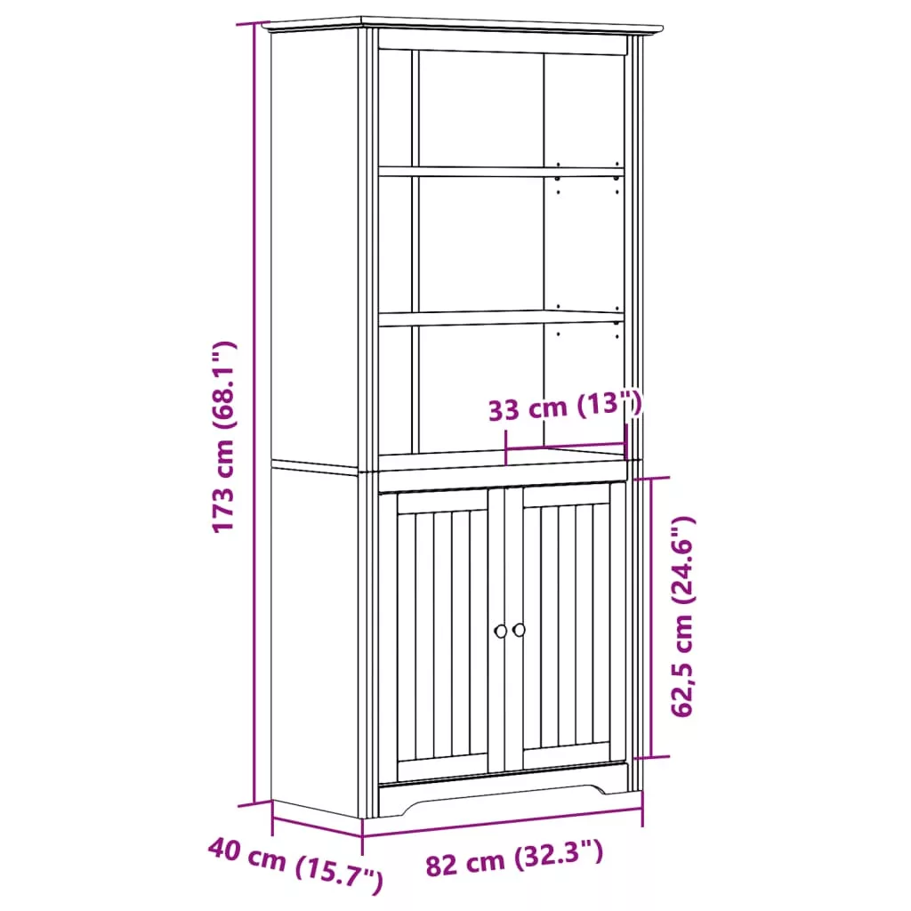 Ez a francia stílusú klasszikus könyvszekrény otthona dekoratív és praktikus kiegészítője lesz. Tömör fenyőfa: A tömör fenyőfa egy gyönyörű természetes anyag. A fenyőfa egyenes erezetű, a csomók pedig jellegzetes, rusztikus megjelenést biztosítanak az anyagnak. A könyvszekrény tömör fenyőfából készült, így stabil és erős szerkezetű.Bőséges tárolóhely: A könyvespolcot 3 nyitott polccal és 2 ajtó mögötti rekesszel tervezték, bőséges tárhelyet kínálva folyóiratai, könyvei és DVD-i tárolására.Praktikus ajtók fém fogantyúkkal: Tartsa pormentesen a legfontosabb dolgait, ha elrejti őket a könyvespolc ajtaja mögé. Az ajtókon található fém fogantyúk megkönnyítik az ajtók nyitását és csukását.Bájos francia stílus: Varázsoljon inspiráló francia stílust belső berendezésébe! Figyelem:A felborulás elkerülése érdekében ezt a terméket a mellékelt fali rögzítőeszközzel kell használni.