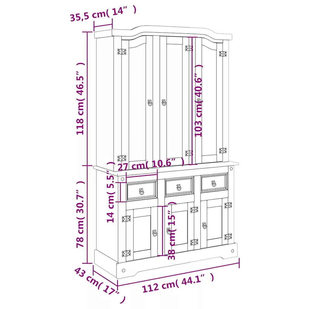 Corona barna tömör mexikói fenyő magasszekrény 112x43x196 cm