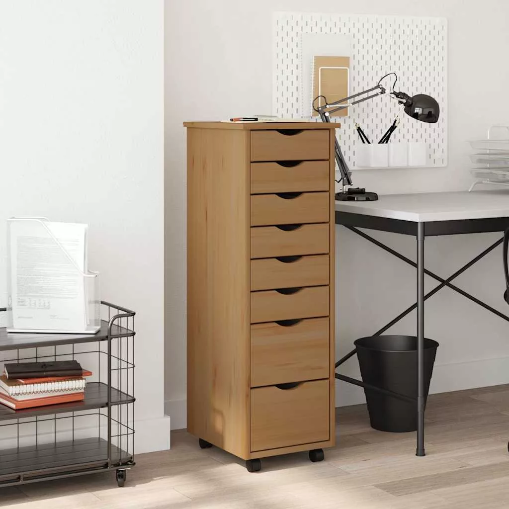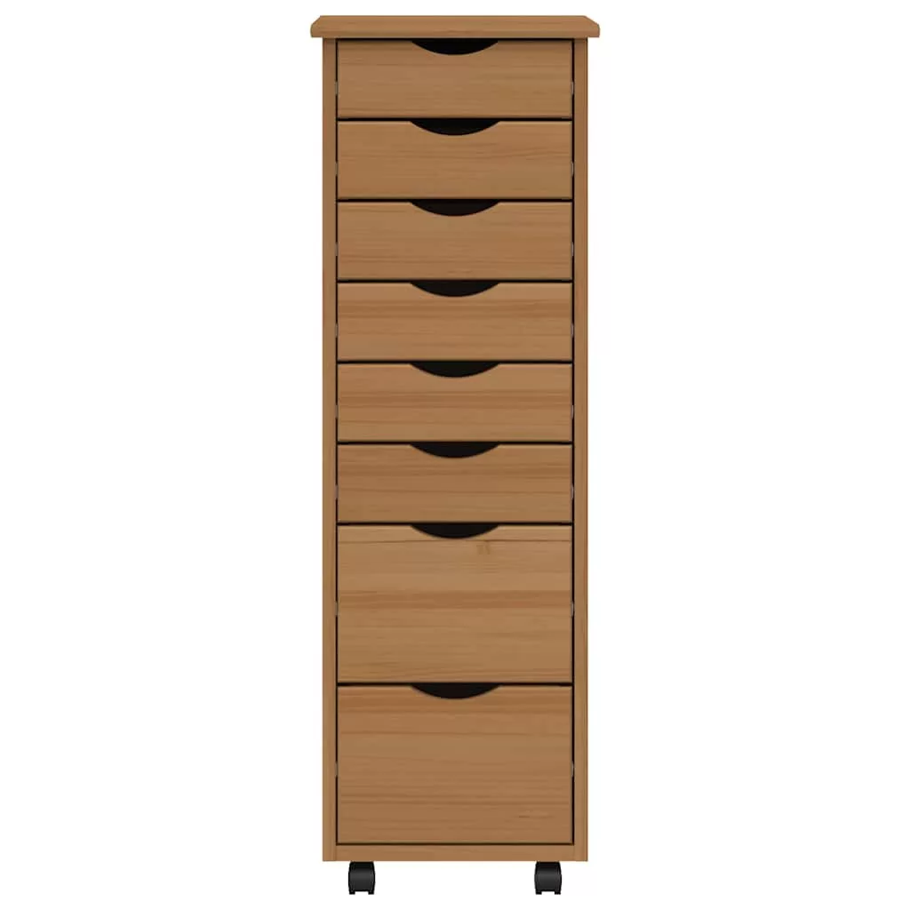 MOSS mézbarna tömör fenyőfa görgős szekrény fiókokkal