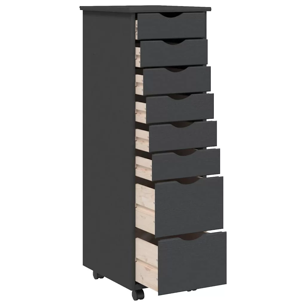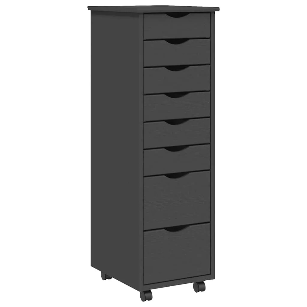 MOSS szürke tömör fenyőfa görgős szekrény fiókokkal