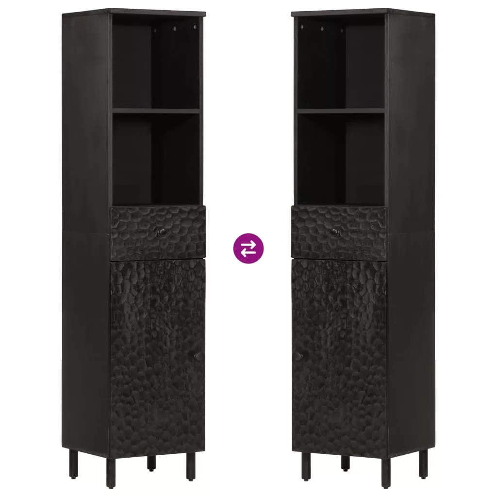 fekete tömör mangófa fürdőszobaszekrény 38 x 33 x 160 cm