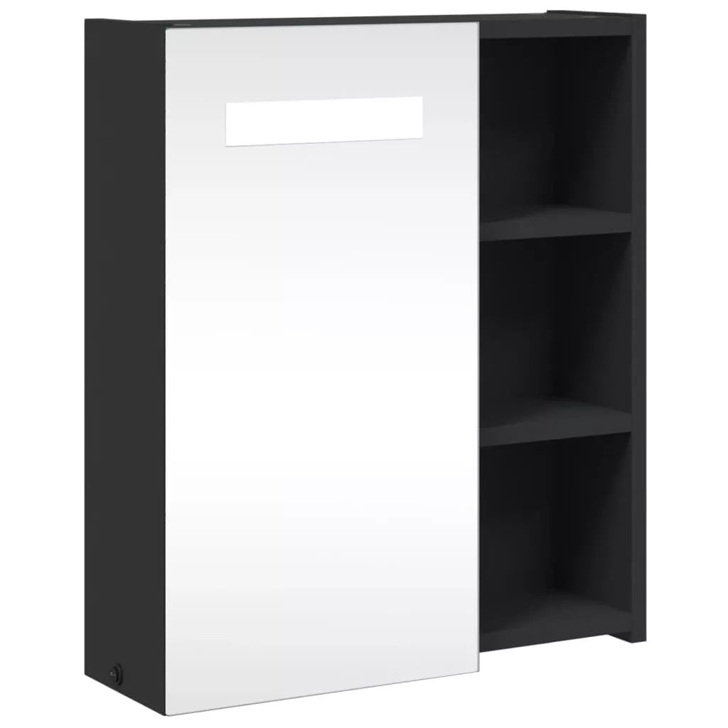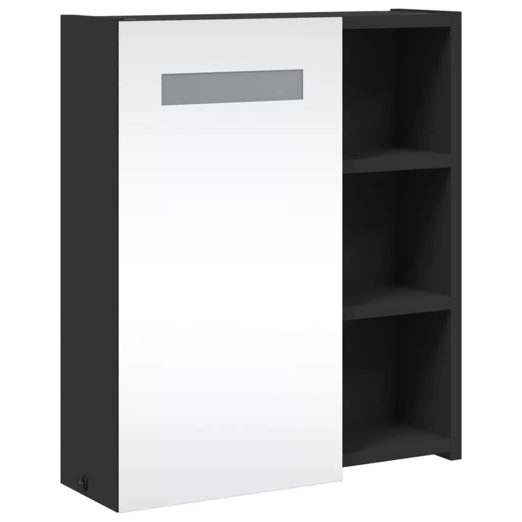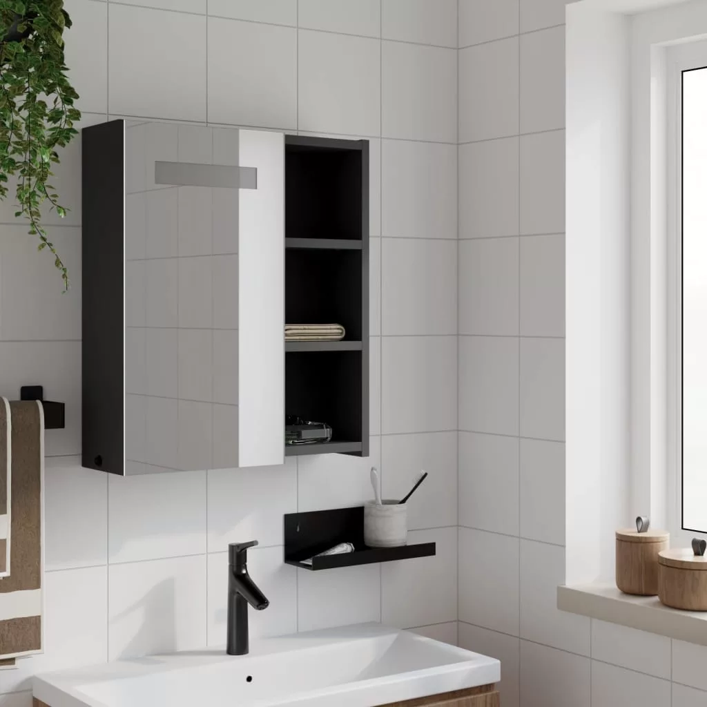 fekete tükrös fürdőszobaszekrény LED-del 45 x 13 x 52 cm