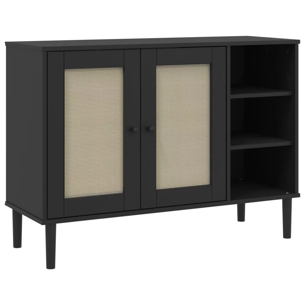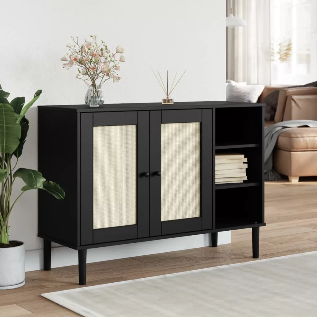 SENJA fekete rattan hatású tálalószekrény 112 x 40 x 80 cm