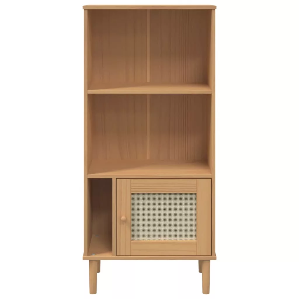 SENJA barna rattanhatású tömör fenyő könyvszekrény 60x35x130 cm