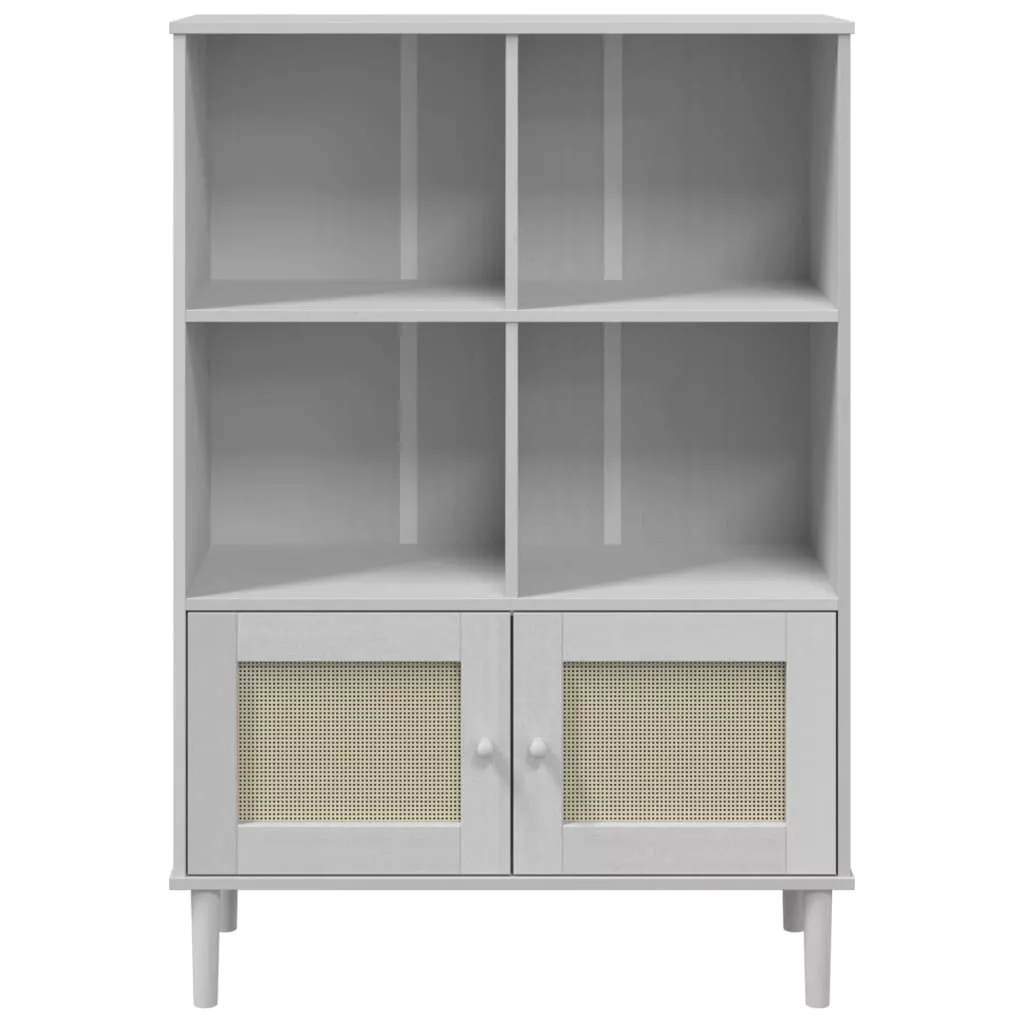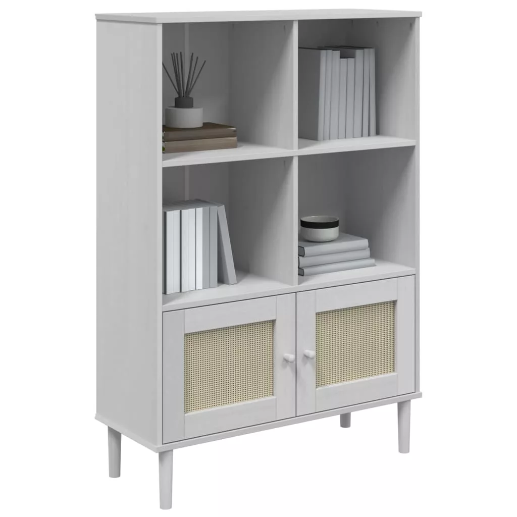 SENJA fehér rattanhatású tömör fenyő könyvszekrény 90x35x130 cm