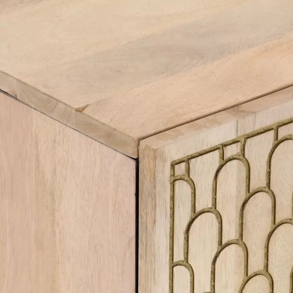 Ez a fürdőszobai mosdószekrény fürdőszobája nagyszerű kiegészítője lesz, miközben retro stílusú és elegáns megjelenést kölcsönöz neki! Tömör mangófa: A tömör mangófa egy erős, trópusi keményfa, melyből strapabíró bútorok készíthetőek. A fa gyönyörű erezetének köszönhetően minden darab kissé különbözik a többitől. A tömör mangófából készült mosdószekrény rendkívül strapabíró és stabil.Bőséges tárolóhely: Az fürdőszobai asztal bőséges tárolóhelyet kínál alapvető kellékei elérhető közelségben történő, rendezett tárolásához.Praktikus szekrénylap: A mosdószekrény felső lapja nyílással rendelkezik, így ideális a mosdókagyló elhelyezésére.Fa lábak: A fa lábak természetes és kellemes megjelenést kölcsönöznek a terméknek, és a stabilitását is biztosítják. Bármilyen környezetbe illeni fog.Kézzel faragott dizájn: Ez a kézzel faragott mintával ellátott fürdőszobabútor az elegáns báj luxusát viszi belső terébe, mivel a helyiség fókuszpontja lesz. Jó tudni:Minden termék egyedi, a szín és az erezet változik. A kiszállítás véletlenszerűen történik, biztosítva terméke exkluzivitását és egyediségét. Figyelem:A felborulás elkerülése érdekében ezt a terméket a mellékelt fali rögzítőeszközzel kell használni.