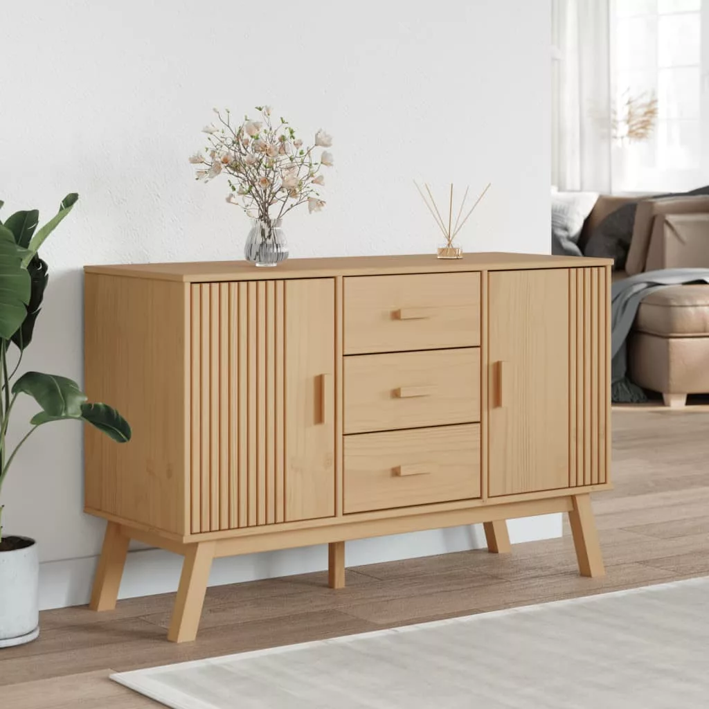 OLDEN barna tömör fenyőfa tálalószekrény 114 x 43 x 73,5 cm