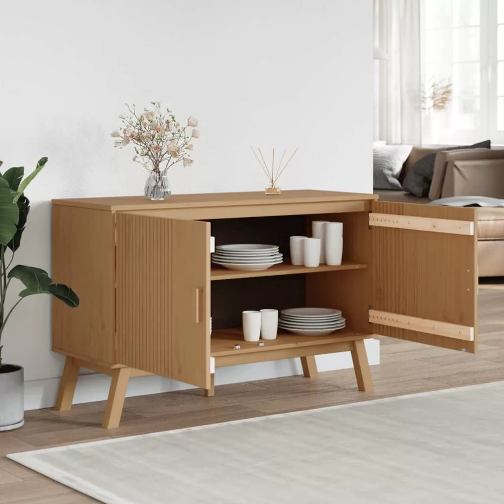 OLDEN barna tömör fenyőfa tálalószekrény 114 x 43 x 73,5 cm