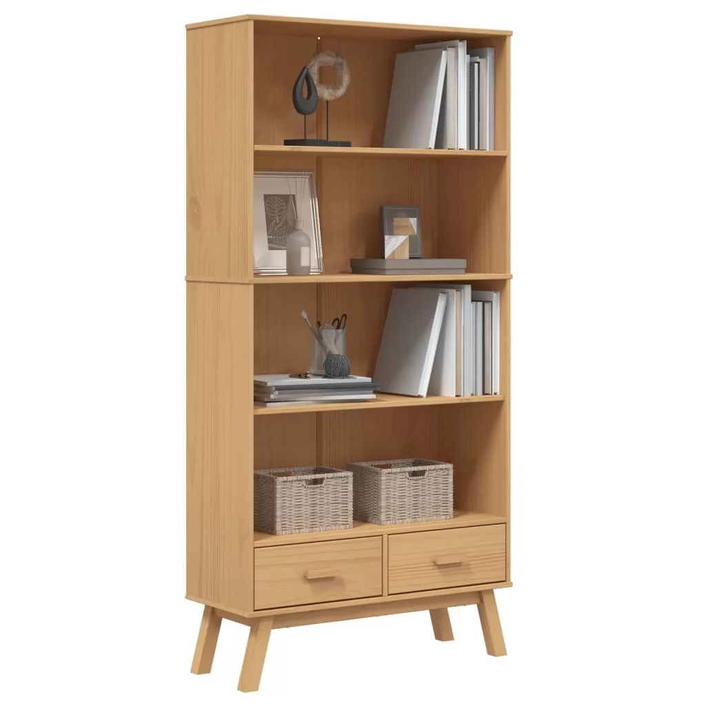 OLDEN 4 szintes barna tömör fenyőfa könyvszekrény