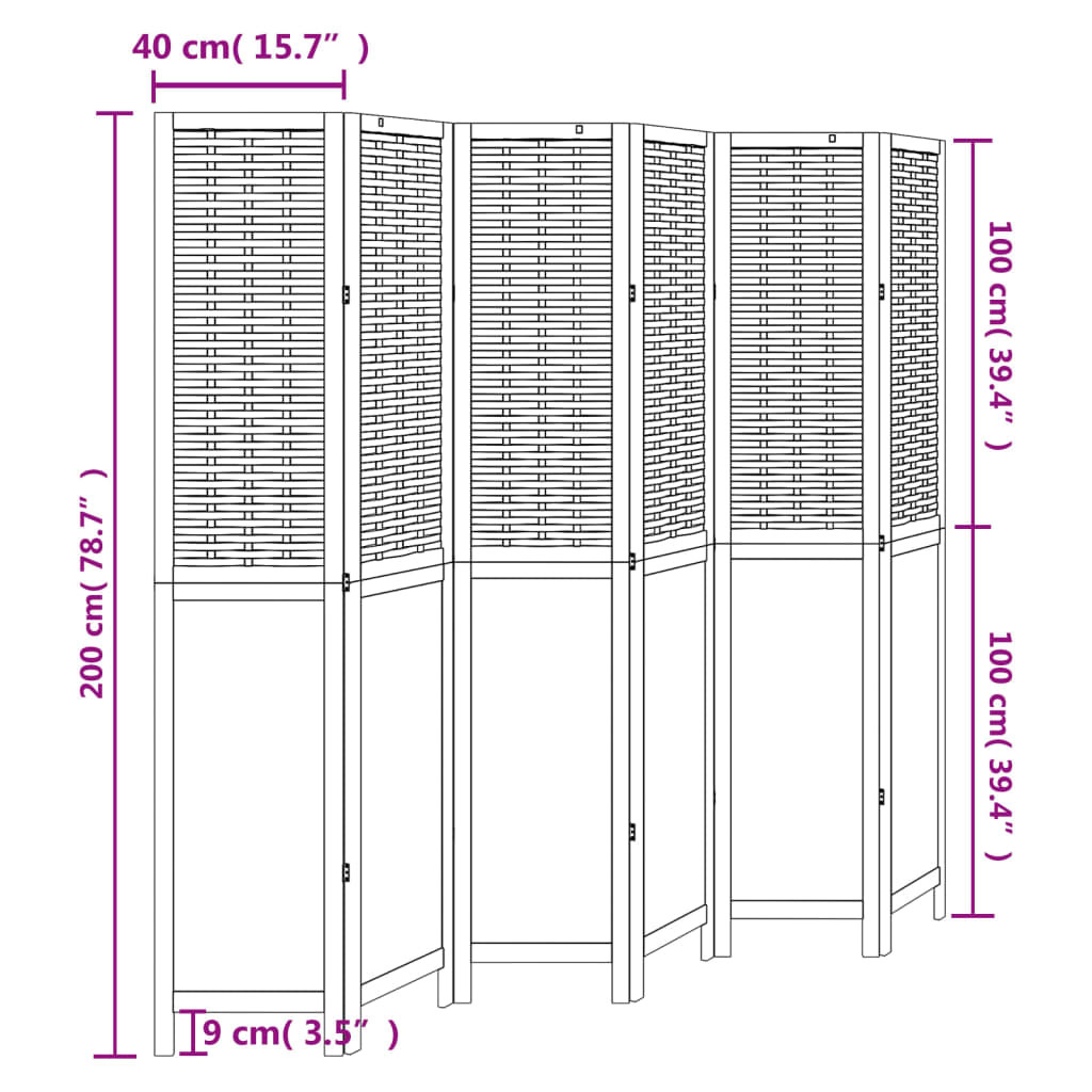 Vigyen eleganciát és szemet gyönyörködtető dekorációt a terébe ezzel a bájos térelválasztóval. Tartós és könnyen tisztítható: A térelválasztó természetes bambuszcsíkokból és mesterséges fából készült, így könnyen tisztítható és tartós.Stabil váz: A tömör császárfa váz szilárdságot és stabilitást biztosít. A tömör császárfa egy gyönyörű természetes anyag. A császárfa rendkívül ellenálló a rovarokkal és a korhadással szemben.Rugalmas és könnyen összecsukható: Minden térelválasztó 3 fémpánttal, a felső és alsó panelek pedig rejtett, 2 az 1-ben zsanérokkal lettek összekötve. Így a térelválasztó panel a helytakarékosság érdekében könnyen összecsukható bizonyos mértékig, az Ön igényei szerint.Többcélú: A térelválasztó kiválóan alkalmas arra, hogy privát teret alakítson ki hálószobájában, nappalijában, irodájában, és más belső terekben. Az ablak elé is elhelyezheti, hogy megelőzze az intenzív napfény beáramlását. Figyelem:Csak beltéri használatra.