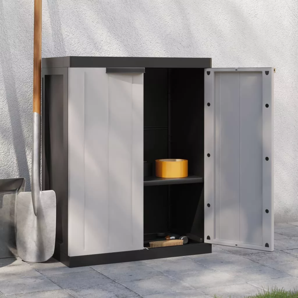 szürke és fekete PP kültéri tárolószekrény 65 x 37 x 85 cm