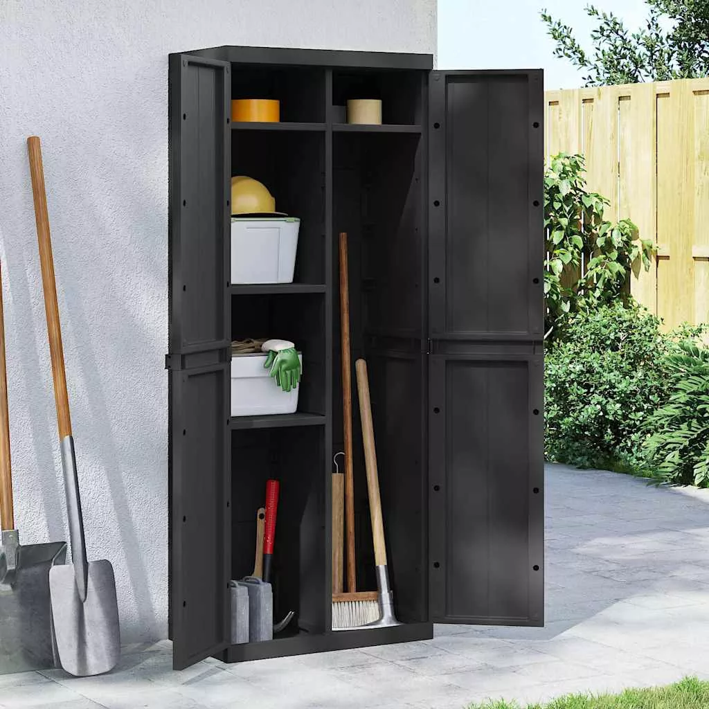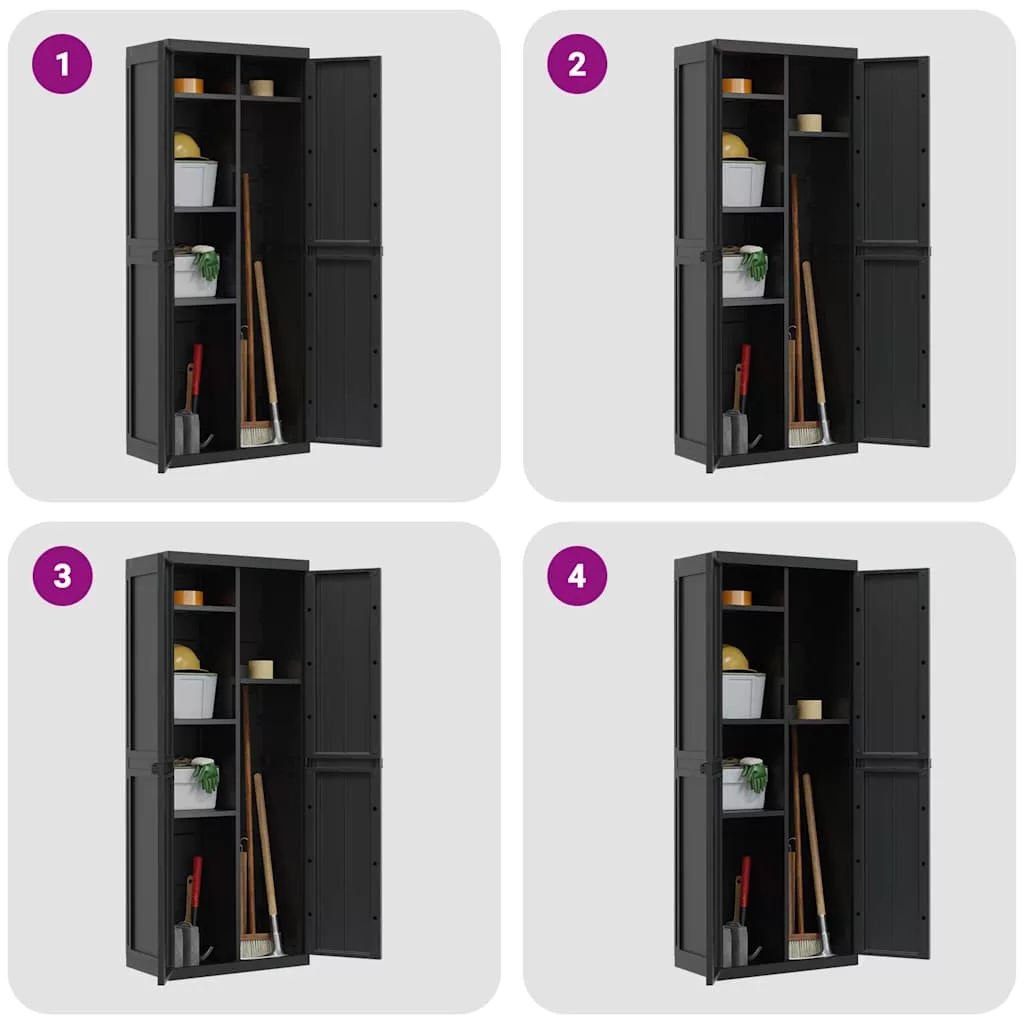 fekete PP kültéri tárolószekrény 65 x 37 x 165 cm