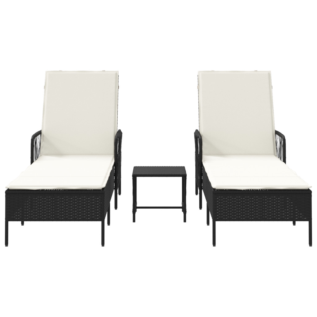 Napozóágy Szett 3 darabos szett Fekete és krém PE rattan, fém
