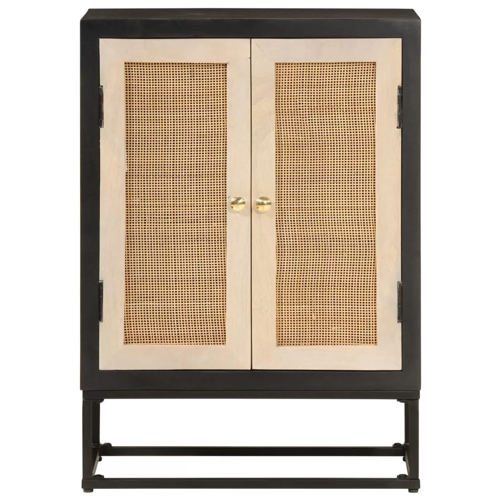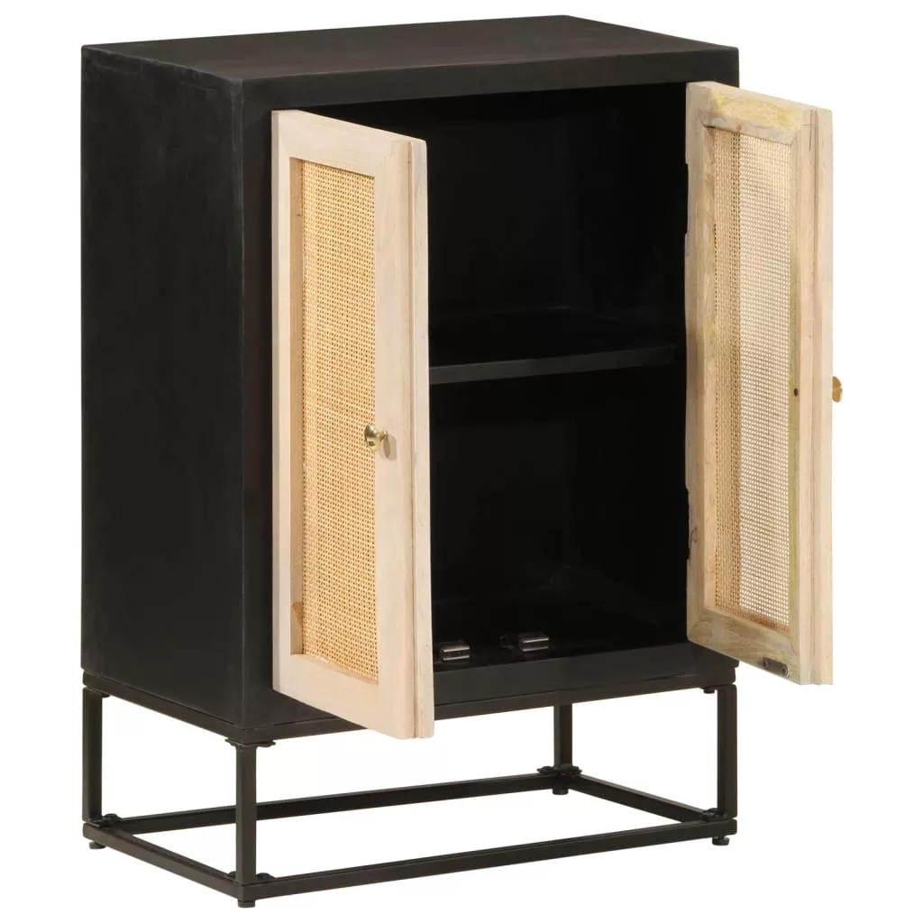 fekete tömör mangófa és vas tálalószekrény 55 x 30 x 76 cm