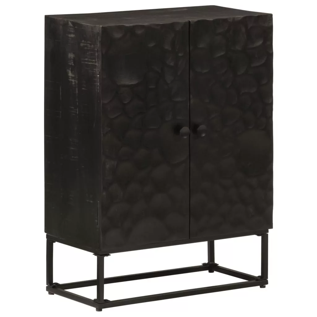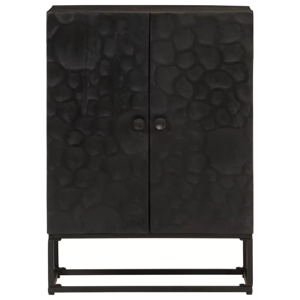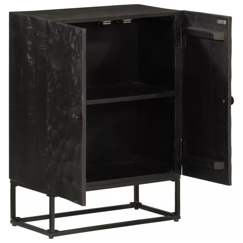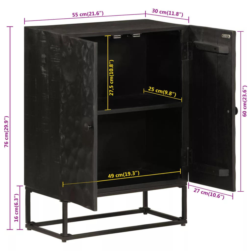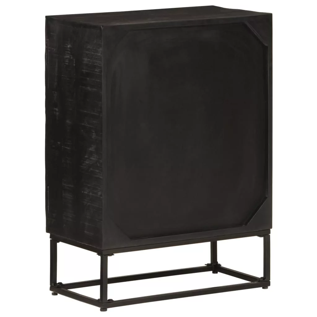 fekete tömör mangófa és vas tálalószekrény 55 x 30 x 76 cm