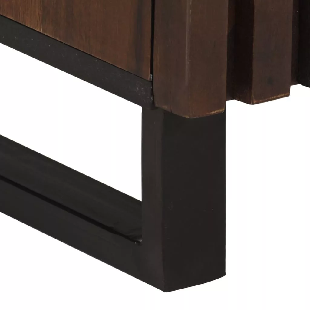Ez a masszív, ipari stílusú tálalószekrény időtlen kiegészítője lesz nappalijának vagy hálószobájának. Robusztus és stabil váz: Az acél erős, stabil és tartós, így ideális választás sokféle használathoz, a bútorgyártástól az építkezésig.Tömör mangófa: A tömör mangófa egy erős, trópusi keményfa, melyből strapabíró bútorok készíthetőek. A fa gyönyörű erezetének köszönhetően minden darab kissé különbözik a többitől.Bőséges tárolóhely: Ez a tálalószekrény 2 ajtós rekesszel rendelkezik, amelyek bőséges tárolóhelyet biztosítanak alapvető holmijai elérhető közelségben történő, rendezett tárolásához.Könnyen tisztítható: A tálaló könnyen tisztítható nedves ruhával, és kevés karbantartást igényel. Figyelem:A felborulás elkerülése érdekében ezt a terméket a mellékelt fali rögzítőeszközzel kell használni.