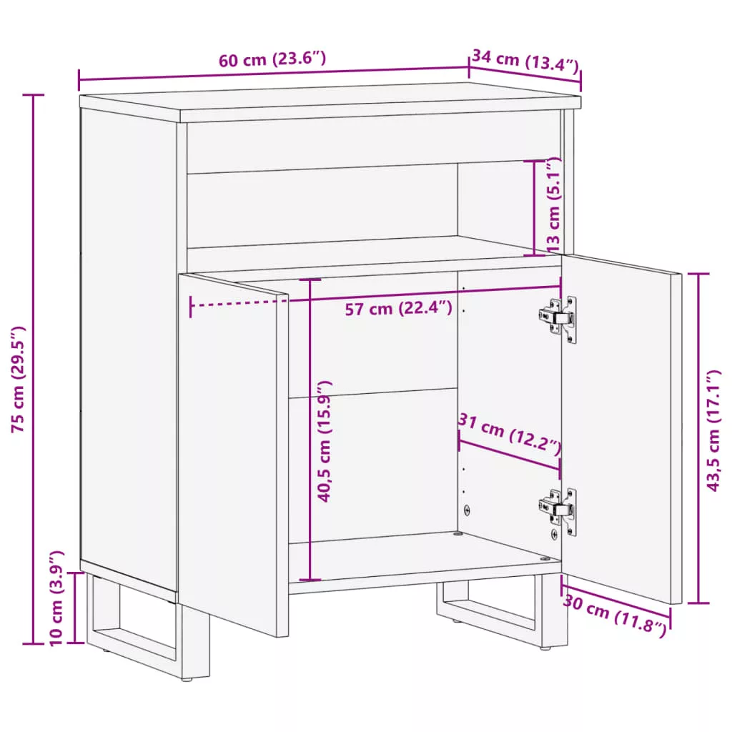 barna tömör mangófa tálalószekrény 60 x 34 x 75 cm