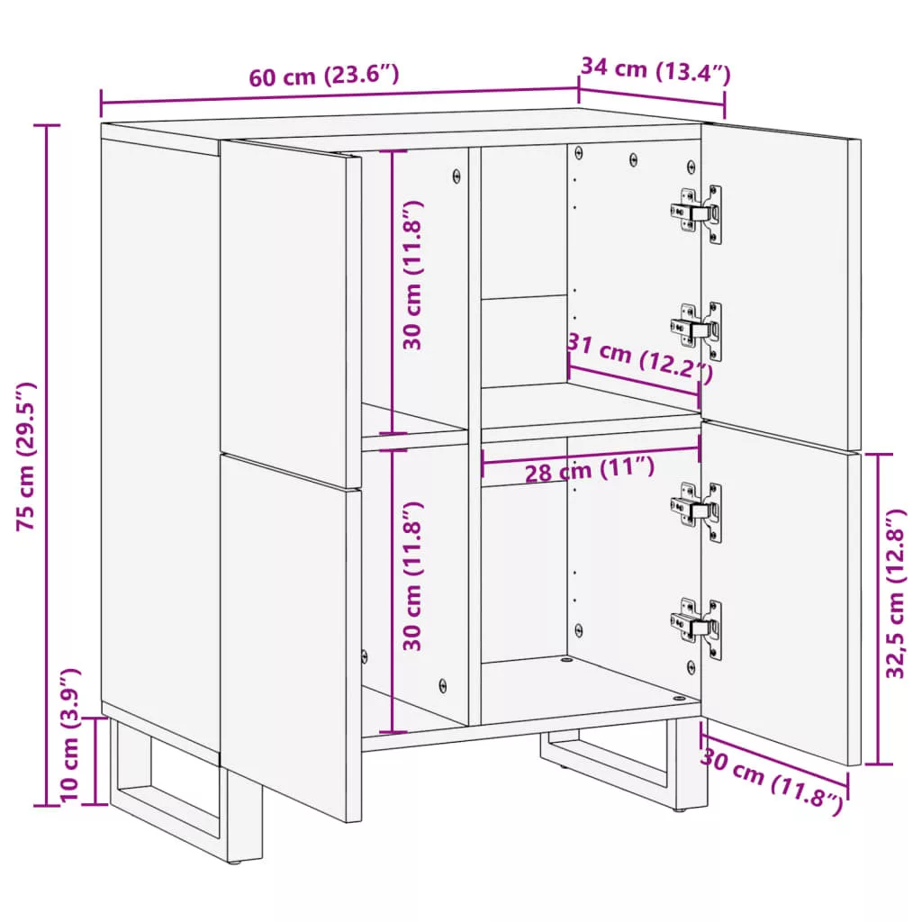 tömör mangó tálalószekrény 60 x 34 x 75 cm
