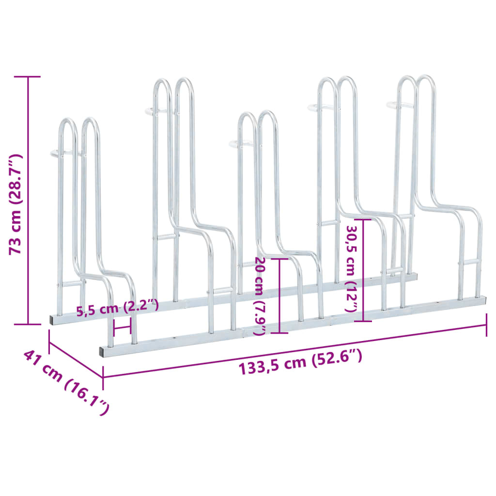 padlón álló horganyzott acél kerékpártartó 5 kerékpárhoz