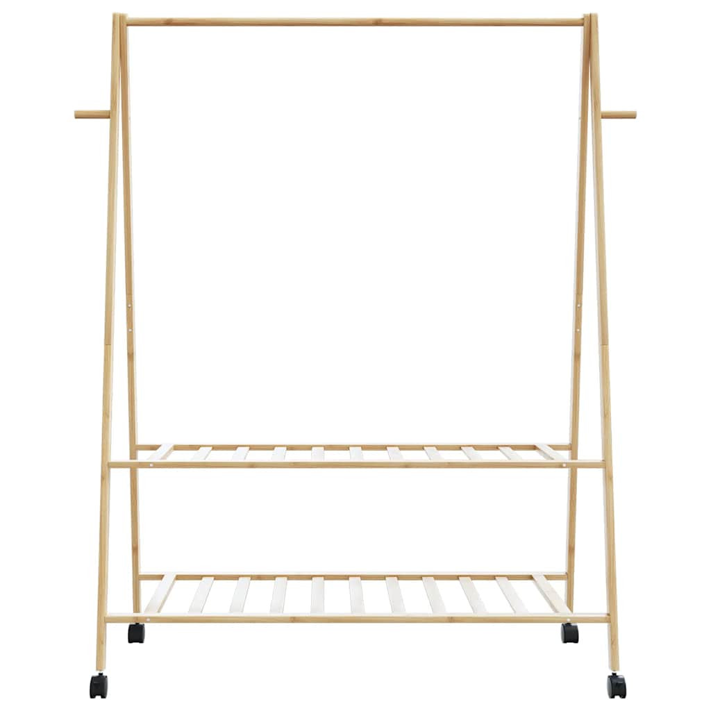 bambusz ruhaállvány polcokkal és kerekekkel 132x45,5x155,5 cm