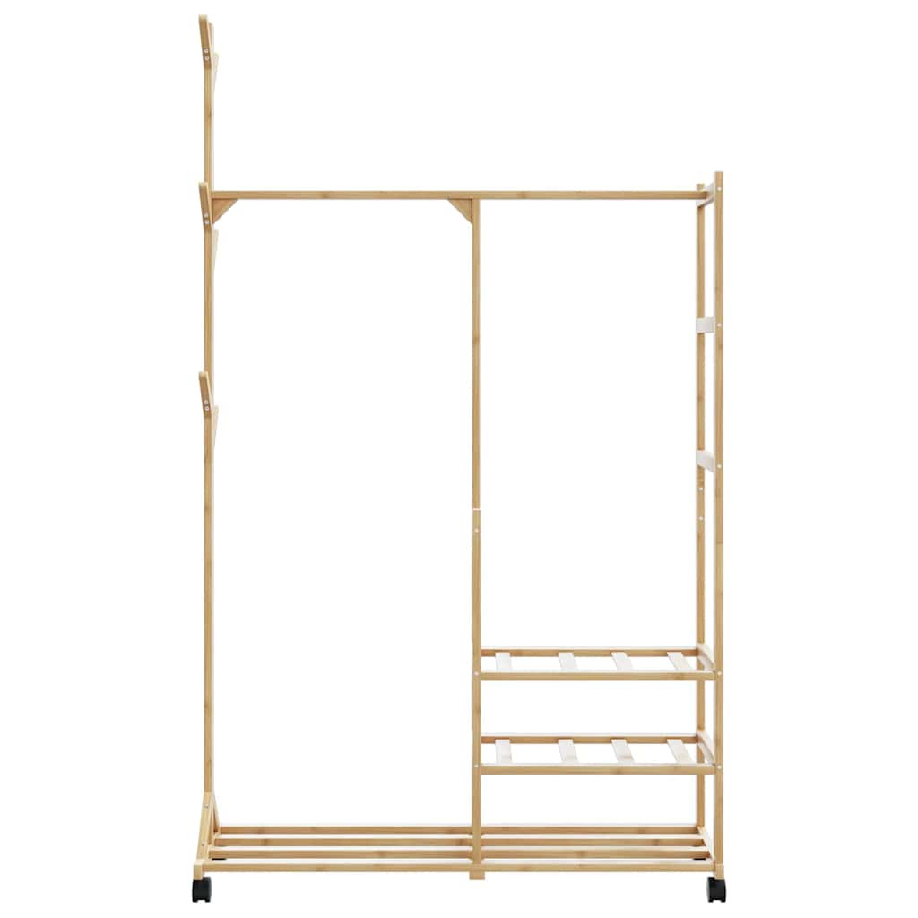 bambusz ruhaállvány polcokkal és kerekekkel 100x38x175,5 cm