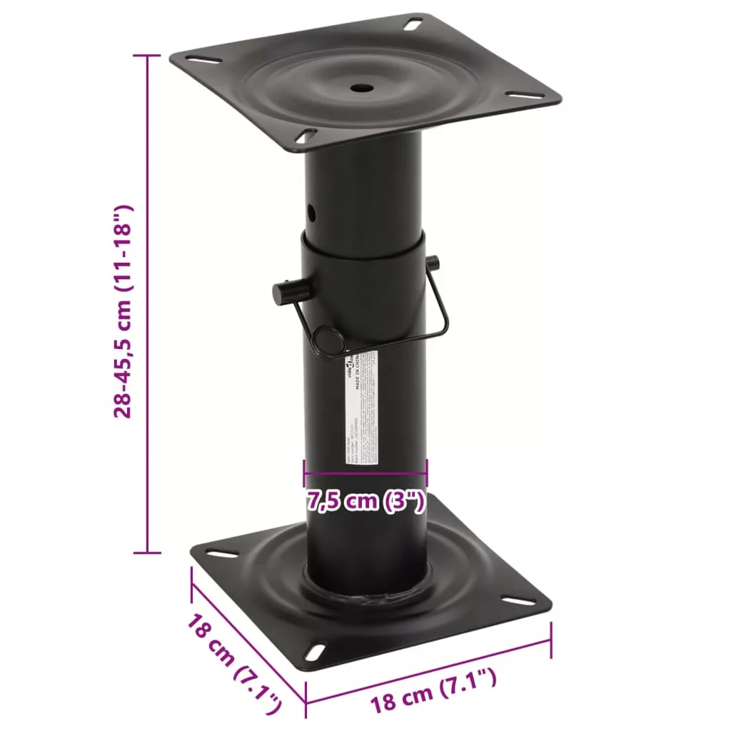 Ezzel a csónakülés-talapzattal masszívan és megbízhatóan rögzíthető egy csónakülés! Hosszú élettartamú anyag: A csónakülés-talapzat acélból készült, így erős és hosszú élettartamú. Fekete porszórt bevonattal rendelkezik, így extra védelmet nyújt a zord tengeri környezettel szemben.Erős szerkezet: A csónakülés-talapzat tartósnak készült, megbízható tartást biztosítva a csónakülésnek. Robusztus kialakítása stabilitást biztosít zord környezetben is.Állítható magasság: Ez a csónakülés-talapzat 28 cm és 45,5 cm között állítható magasságú, így igényei szerint állíthatja be.Praktikus kialakítás: A csónakülés-talapzat pozitívan záródó fogantyúval rendelkezik, amely a nagyobb szilárdság és kényelem érdekében rozsdamentes acél alkatrészekből készült.Univerzális kompatibilitás: Ez a csónakülés-talapzat minden lapos fenekű üléshez alkalmas, vagy ahol a lyukméret golyóscsapágyakhoz használható, így szabadon választhat és párosíthat egyedi igényei szerint. Jó tudni:A szállítmány csak egy csónakülés-talapzatot tartalmaz; keresse fel webáruházunkat, hogy megtalálja a hozzáillő csónakülés forgót és csónakülést a teljes ülésmegoldáshoz!