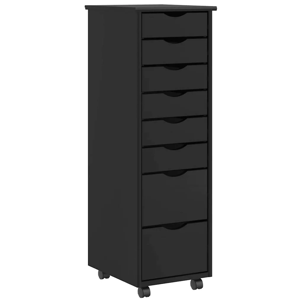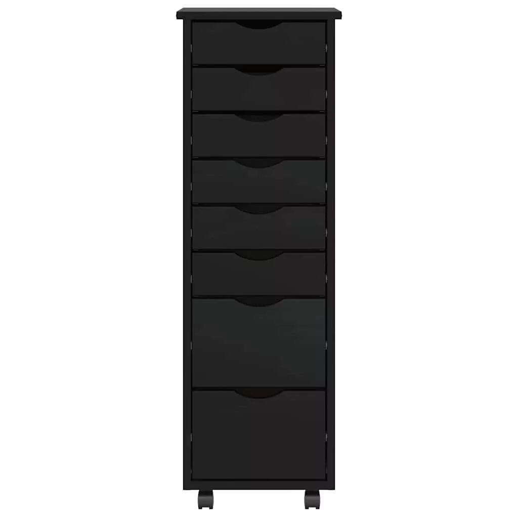 MOSS fekete tömör fenyőfa görgős szekrény fiókokkal