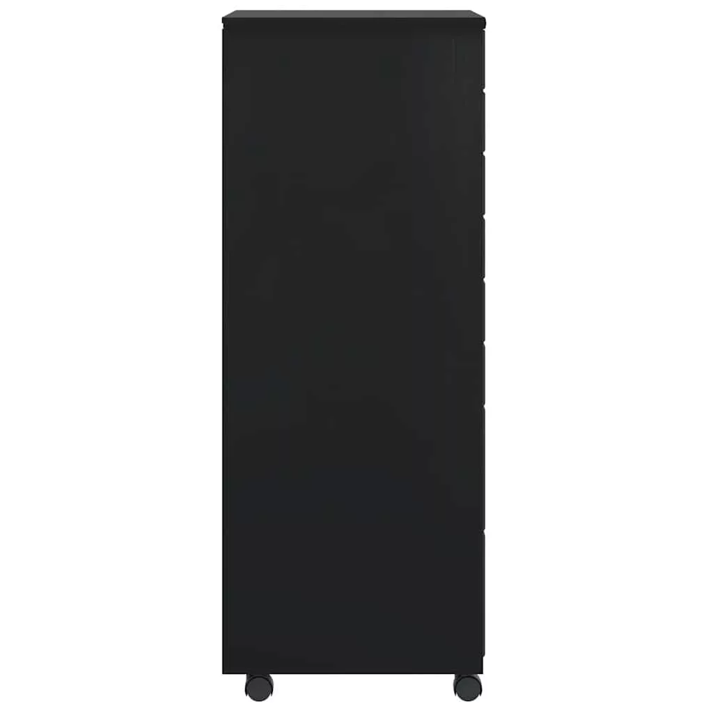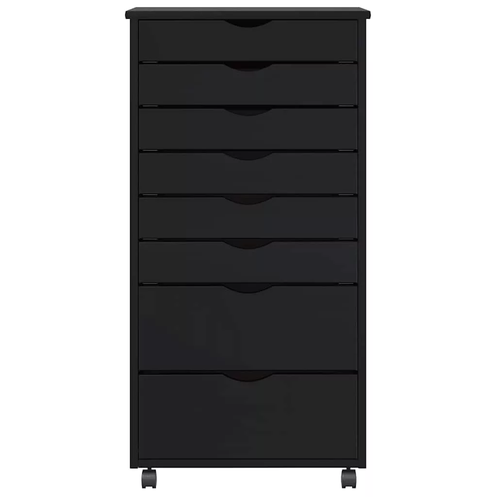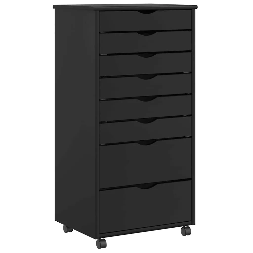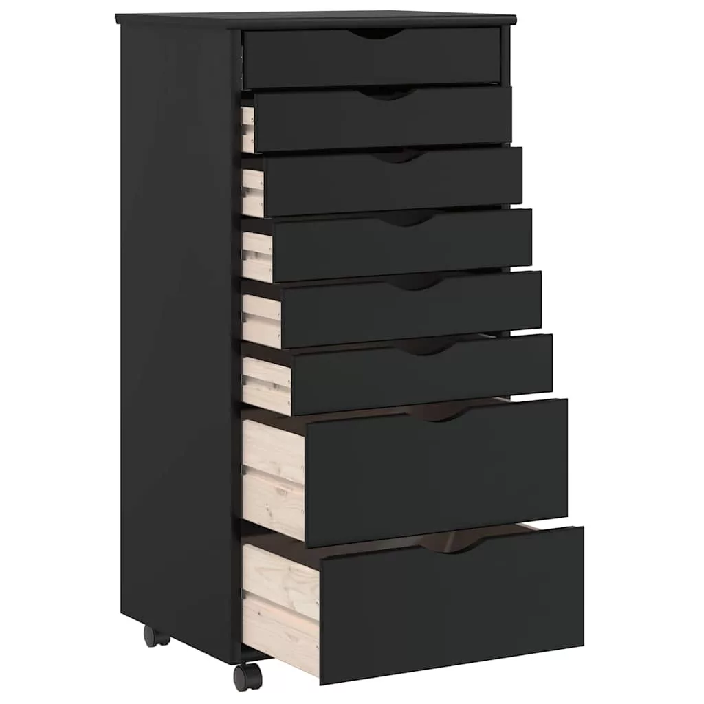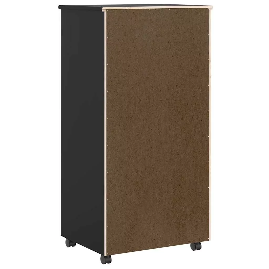 MOSS fekete tömör fenyőfa görgős szekrény fiókokkal