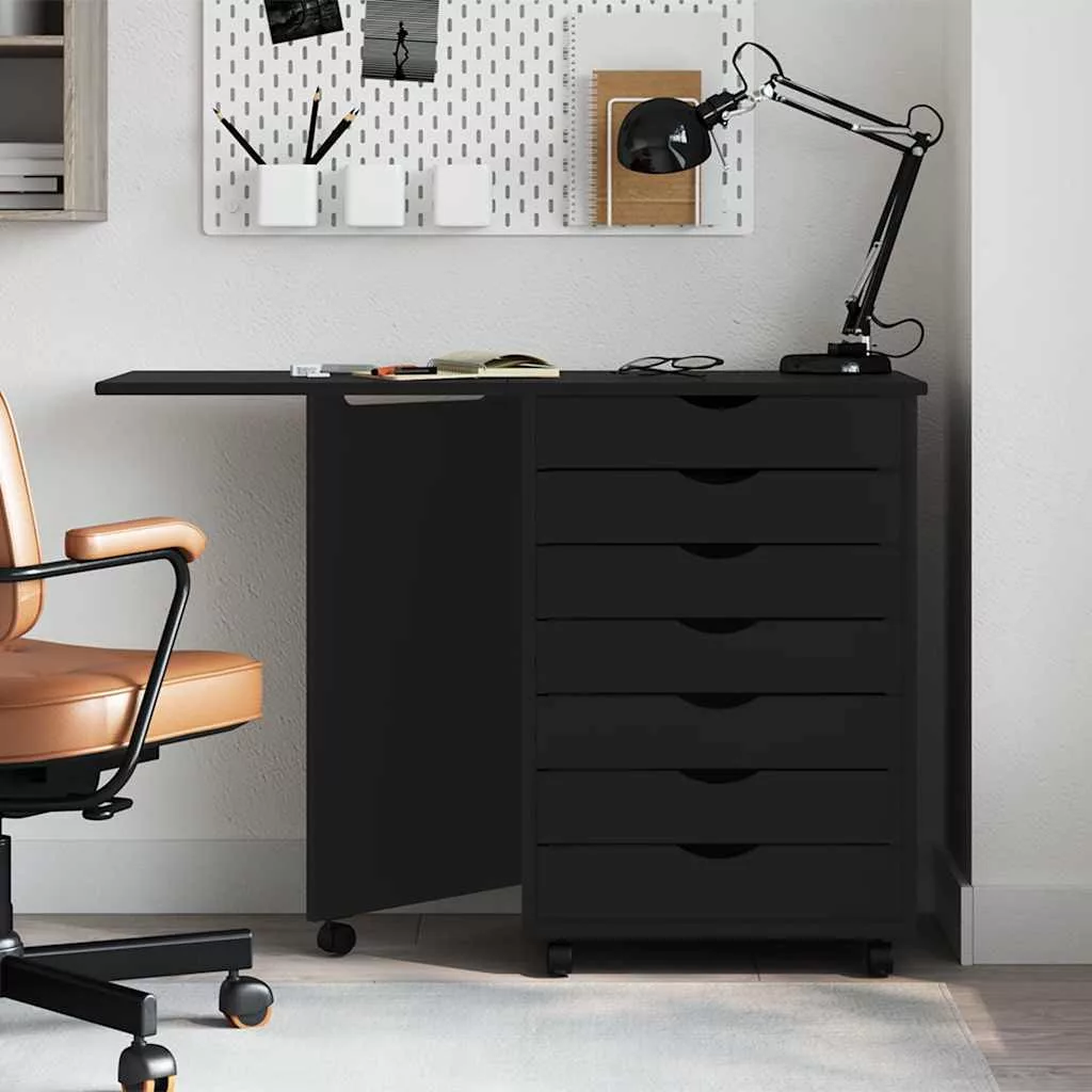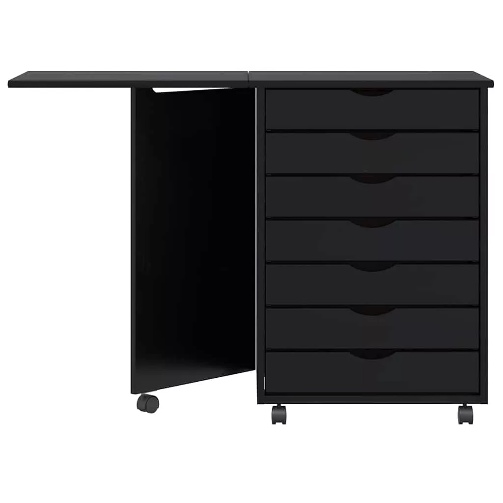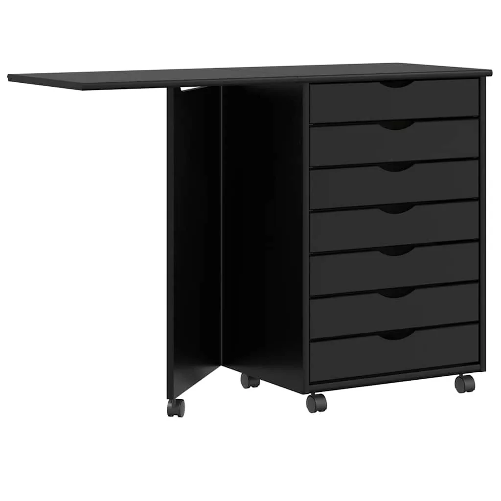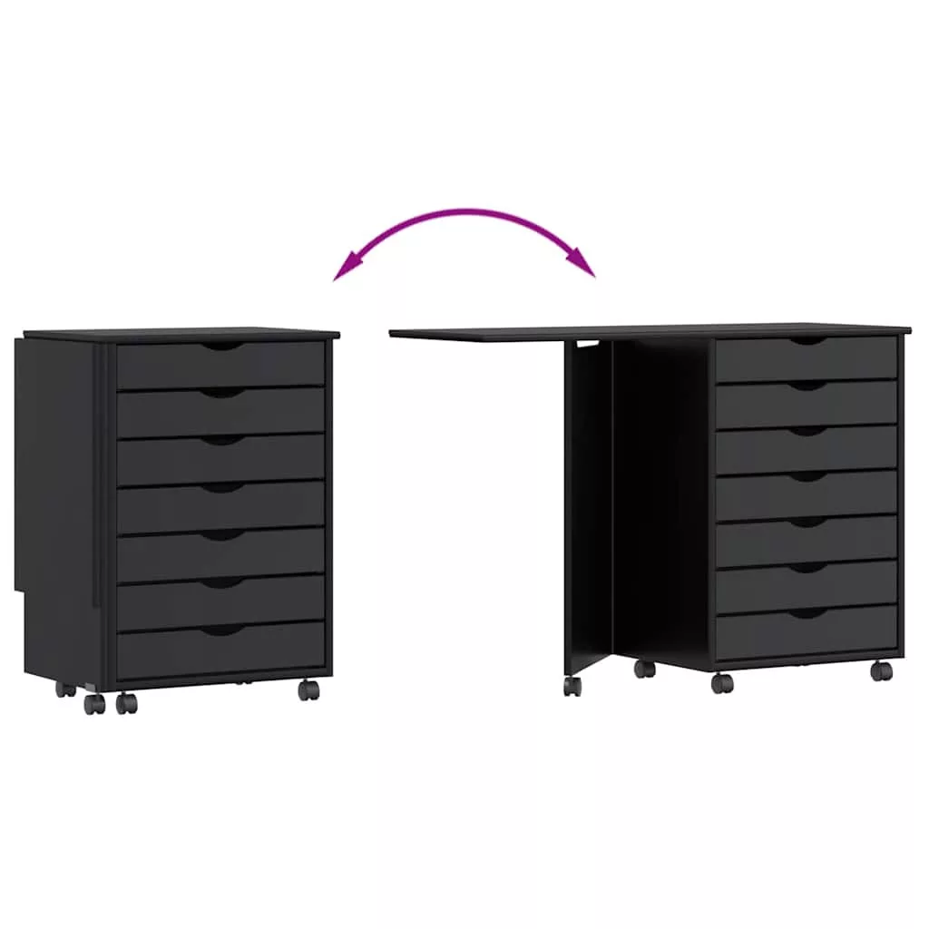 gördülő szekrény íróasztallal MOSS fekete tömörfa fenyőfa
