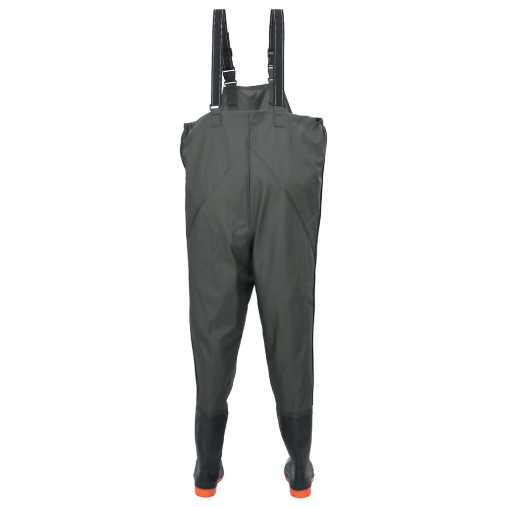 Ez a mellkasig érő gázlóruha tartós és rugalmas, így használható horgászathoz, vadászathoz, gazdálkodáshoz stb. Vízálló: Ez a speciális bevonatú poliészter szövet belül kényelmes, kívül pedig robusztus. A steppelt és ragasztott varrásoknak és a hozzácsatolt csizmáknak köszönhetően ez a gázlóruha vízálló. Védelem: Ez a gázlóruha védelmet nyújt a víz, a sár és egyéb elemek ellen, szárazon és kényelmesen tartva Önt munka vagy szabadtéri hobbitevékenységek közben. Állítható és kényelmes: A horgászruha nadrágtartói állíthatók, így a ruha könnyen és gyorsan fel- és levehető. Emellett a pántok tökéletesen illeszkednek, ezáltal kényelmes viseletet biztosítanak. Hozzácsatolt csizma a kényelem érdekében: A hozzácsatolt csizmával ez a gázlóruha könnyen fel- és lehúzható, így időt és erőfeszítést takaríthat meg a különálló ruha és csizma fel- és lehúzásához képest. Többféle felhasználási terület: Ez a csizmával ellátott horgászruha kiváló ruhadarab horgászok és gazdálkodók számára, de erdei sétákhoz és kiránduláshoz, illetve vadászathoz és egyebekhez is tökéletes.