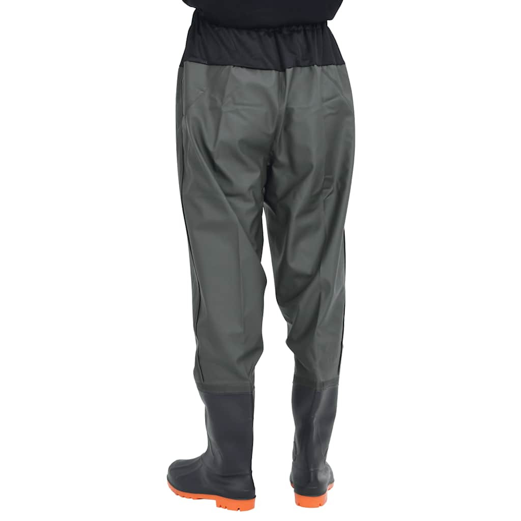 Ez a derékig érő gázlóruha tartós és rugalmas, így használható horgászathoz, vadászathoz, gazdálkodáshoz stb. Vízálló: Ez a speciális bevonatú poliészter szövet belül kényelmes, kívül pedig robusztus. A steppelt és ragasztott varrásoknak és a hozzácsatolt csizmáknak köszönhetően ez a gázlóruha vízálló. Védelem: Ez a gázlóruha védelmet nyújt a víz, a sár és egyéb elemek ellen, szárazon és kényelmesen tartva Önt munka vagy szabadtéri hobbitevékenységek közben.Hozzácsatolt csizma a kényelem érdekében: A hozzácsatolt csizmával ez a gázlóruha könnyen fel- és lehúzható, így időt és erőfeszítést takaríthat meg a különálló ruha és csizma fel- és lehúzásához képest. Többféle felhasználási terület: Ez a csizmával ellátott horgászruha kiváló ruhadarab horgászok és gazdálkodók számára, de erdei sétákhoz és kiránduláshoz, illetve vadászathoz és egyebekhez is tökéletes.