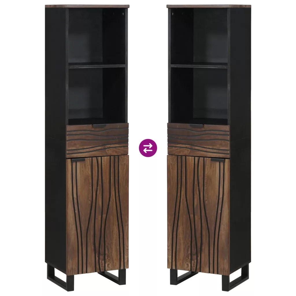 Ez a klasszikus tárolószekrény pont az, amire szükséged van, hogy a fürdőszobai cuccaid rendezettek legyenek. Hagyományos stílusú, téglalap alakú, gazdag fa felületei szépen illeszkednek bármilyen dekorhoz, eleganciát adva a helynek. Stílusos és praktikus, rengeteg helyet kínál piperecikkeknek, törölközőknek és más cuccoknak, mindent elrak, amire szükséged van. Szilárd Fák: Ez a szekrény főleg szilárd mangóból készült, ami nagyon tartós. Szép textúrája és mintázata nemcsak jól néz ki, hanem hosszú távon is megbízhatóan működik. A mangó és akácfa keveréke növeli az erősségét, így a minősége megmarad a páratartalom változása mellett is. Időtlen Design: Élvezd a klasszikus stílusú dizájnt, gyönyörű részletekkel. A csíkos mintázata szép vizuális harmóniát teremt, így ez a szekrény a fürdőszobád középpontjába kerül. Meleg színei szépen passzolnak a legtöbb fürdőszobai stílushoz, eleganciát biztosítva. Fényűző Tárolás: Bőséges fiókjaival és zsanéros ajtókkal ez a szekrény remekül segít rendet tenni és a dolgokat kiemelni. Praktikus rekeszei segítenek a rend fenntartásában, ideális mindennapi és különleges alkalmakra. Könnyű Összeszerelés: Néhány összeszerelést igényel, de csupán kalapácsra van szükséged. Az egyszerű útmutatók megkönnyítik a dolgodat, így gyorsan úgy használhatod az új tárolódat, hogy közben nem kell extra szerszámokkal bajlódnod. Ápolás & Karbantartás: A szekrény felületének karbantartása egyszerű, csak egy kis figyelmet igényel. Egy nedves ronggyal való áttörléssel eltávolíthatod a port és a szennyeződéseket, így megőrizheted szép állapotát. A legjobb eredmény érdekében kövesd a rendszeres takarítási ütemezést, hogy mindig csúcsformát mutasson.