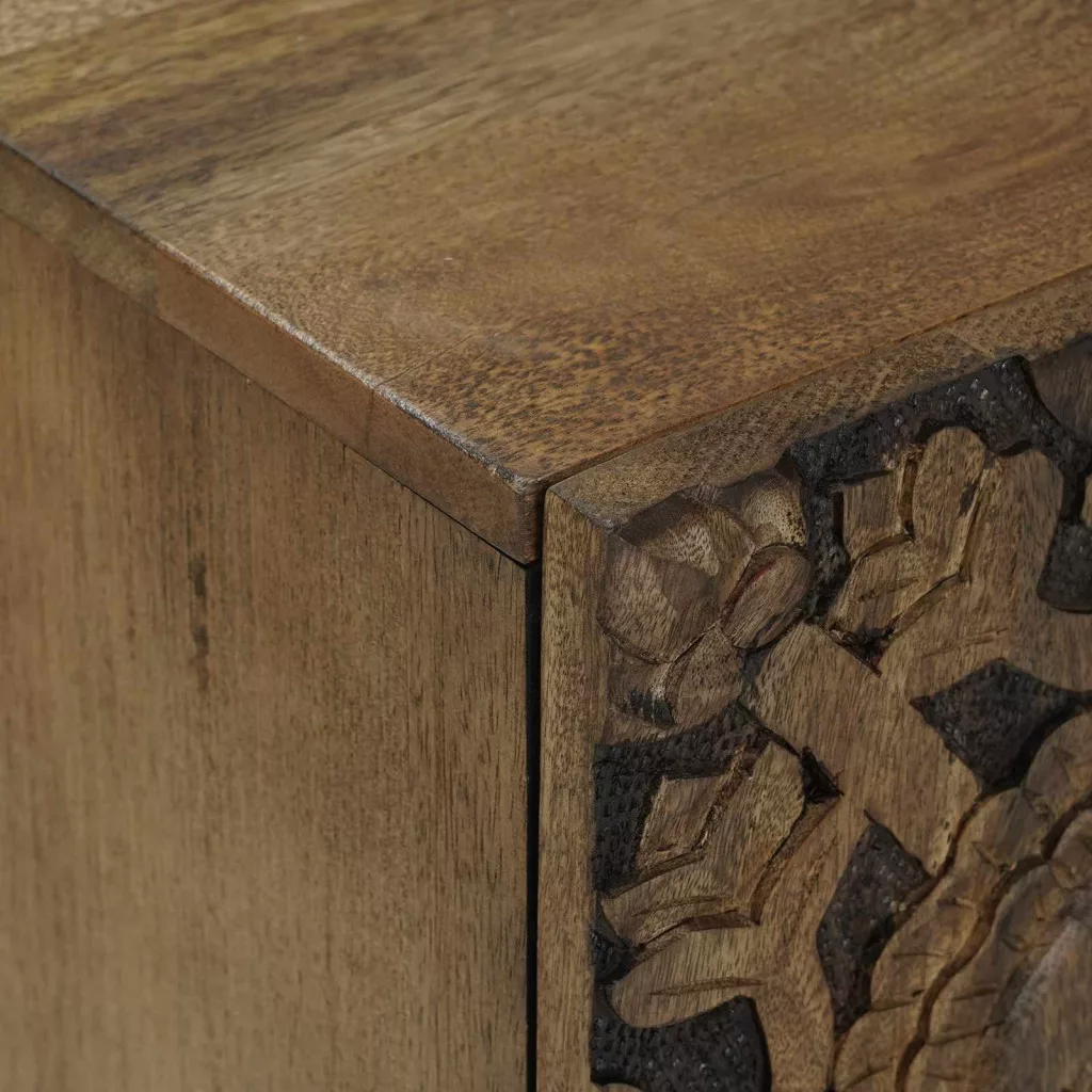 Ez a tömör mangófa TV szekrény úgy van tervezve, hogy a funkcionalitást és a stílust ötvözze, így igazi alapdarabja lesz bármely nappalinak. Az áramvonalas, téglalap alakú dizájnja jól passzol a modern és klasszikus környezetekhez, szép és hasznos megoldásokat kínálva. Sima felülete ideális a TV-nek, mentre intuitív dizájnjánál fogva könnyen rendben tarthatod a média berendezéseket és kiegészítőket. Tömör Mangófa: Prémium mangófából készült, a TV szekrény stabilitást és ellenállóságot kínál, ötvözve a természetes szépséget a robusztus erővel. A fa gazdag tónusai jól illeszkednek a különböző otthonok stílusaihoz, vonzó megjelenést és tartós teljesítményt nyújtva. Karcsú Dizájn: Karcsú, téglalap alakú formájával eleganciát visz a nappali térbe, könnyedén harmonizálva a meglévő dekorációval. Támogatja a különböző TV méreteket, miközben a befejezés kiemeli a fa természetes erezetét, fokozva a szoba melegségét. Bőséges Tárolás: Rengeteg helyet kínál a média berendezések, DVD-k és hasonlók számára, így a nappali rendezett maradhat. Az ügyesen tervezett rekeszek könnyen hozzáférhetők, készen állnak, hogy teljesítsék a modern szórakoztatás igényeit. Beltéri Exkluzív: Ez a szekrény kizárólag beltéri használatra van tervezve, tökéletesen passzolva a háztartási belső terek kényelmes légkörébe. Olyan mérete van, ami illeszkedik a különböző szobatervekhez, miközben stabil platformot nyújt a televízió számára. Könnyű Karbantartás: A felület tisztán tartása egyszerű, csak át kell törölni egy nedves ruhával. Ez az egyszerű ápolás biztosítja, hogy a szekrény mindig elegáns középpont maradjon, megőrizve a kifinomult kinézetét.