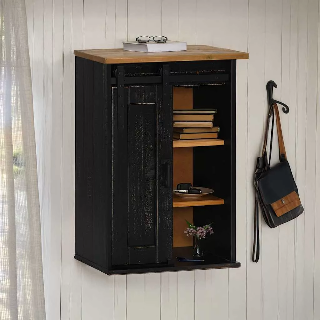 HALDEN fekete fenyőfa akasztószekrény tolóajtóval 49x22,5x70 cm