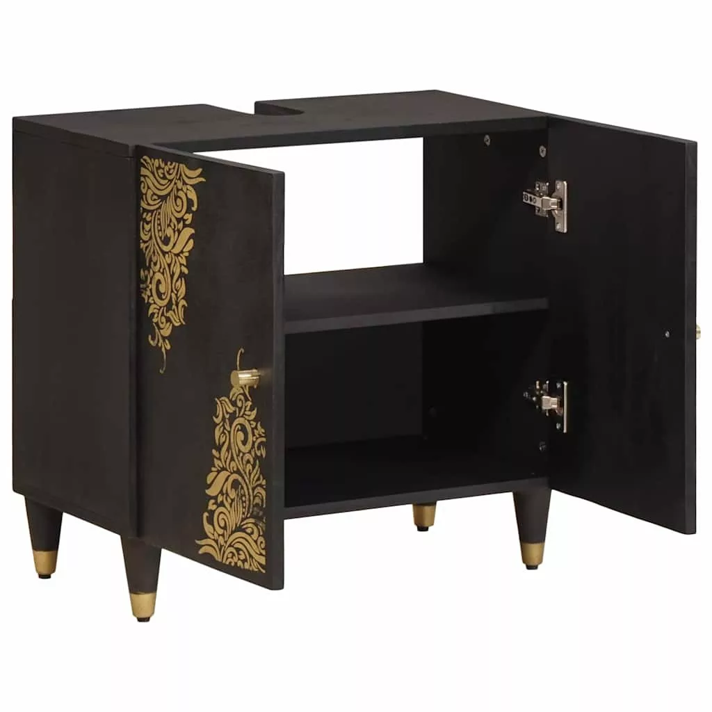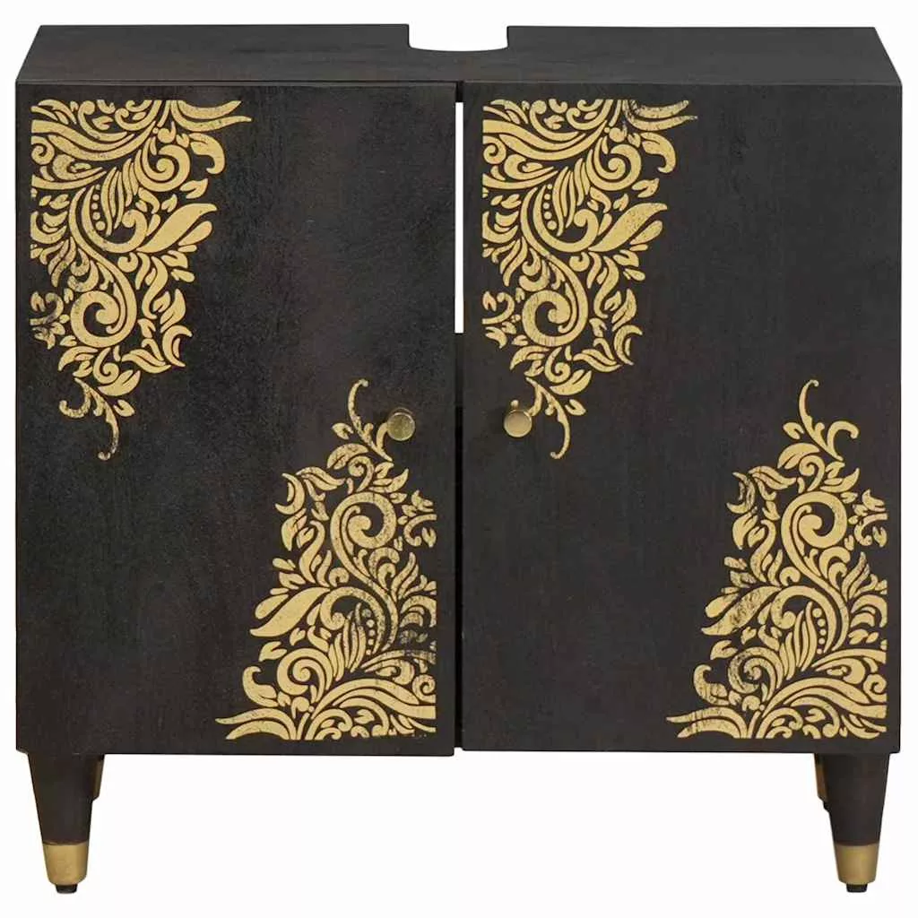 Mosdókagyló szekrény Fekete 62 x 33 x 58 cm Tömör Mangófát