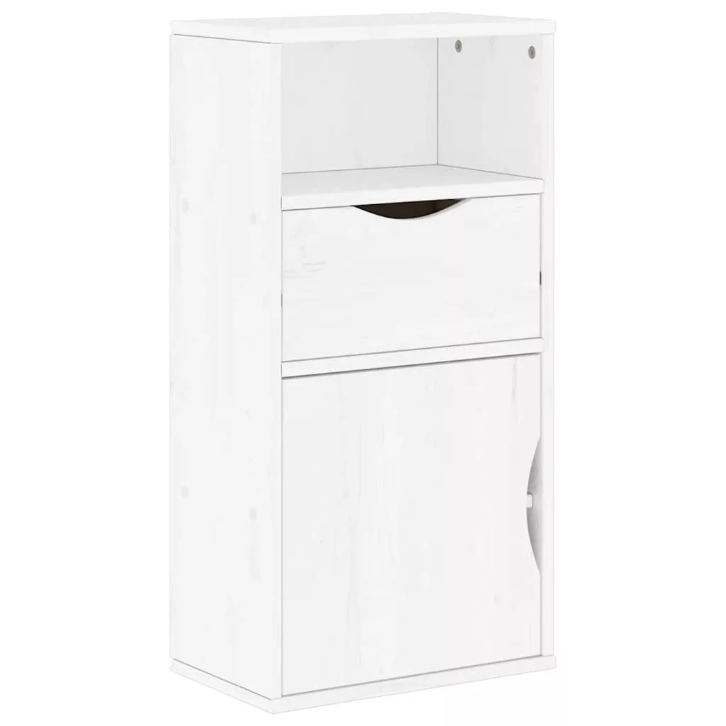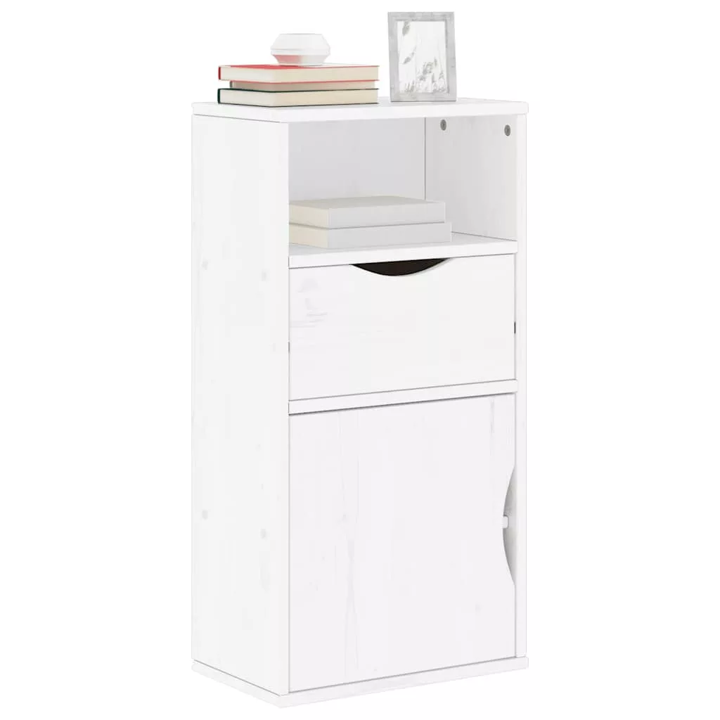 ODDA tömörfa fenyőfa oldalsó szekrény fiókkal fehér 40x24x79 cm