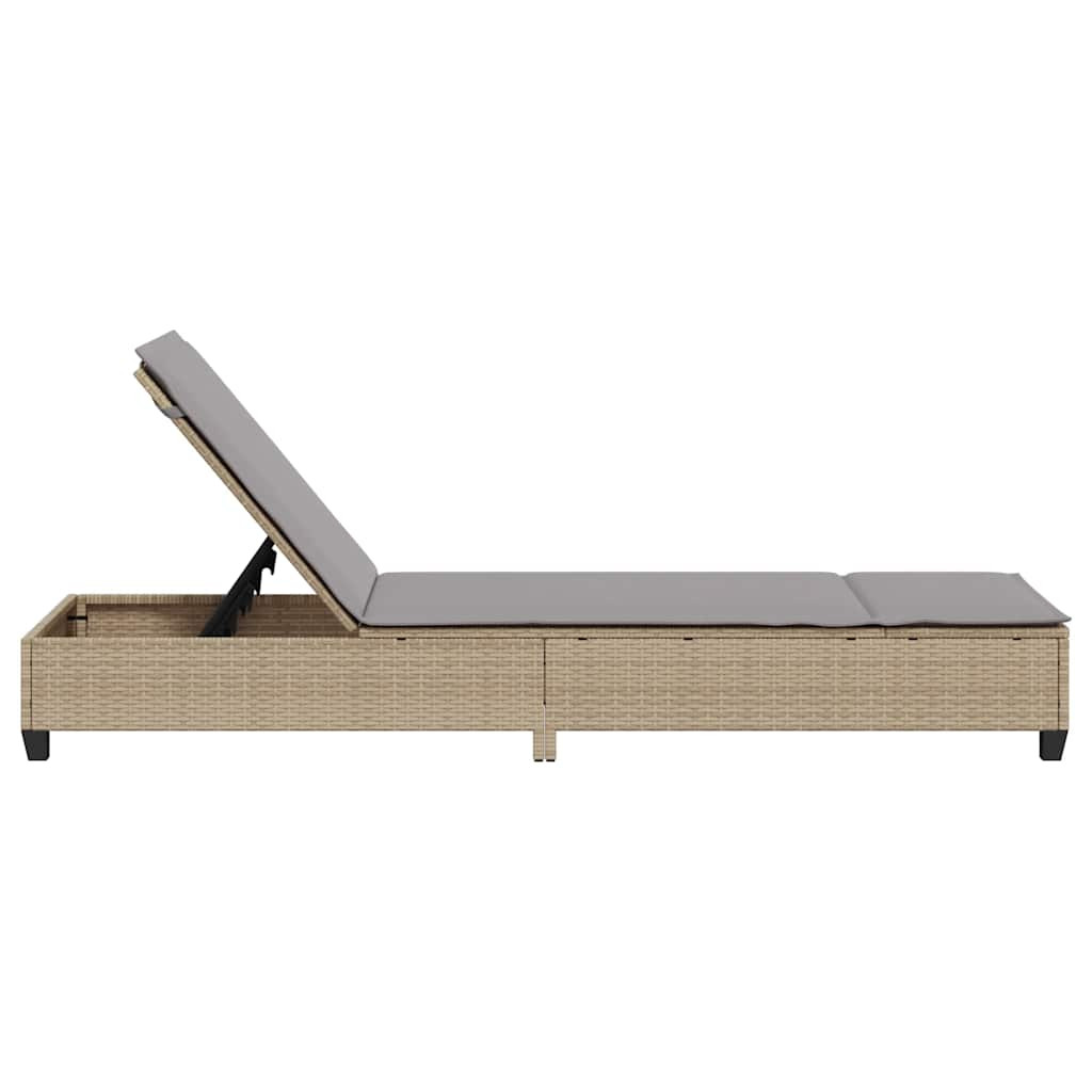 bézs polyrattan napozóágy párnákkal 55x200x25,5 cm