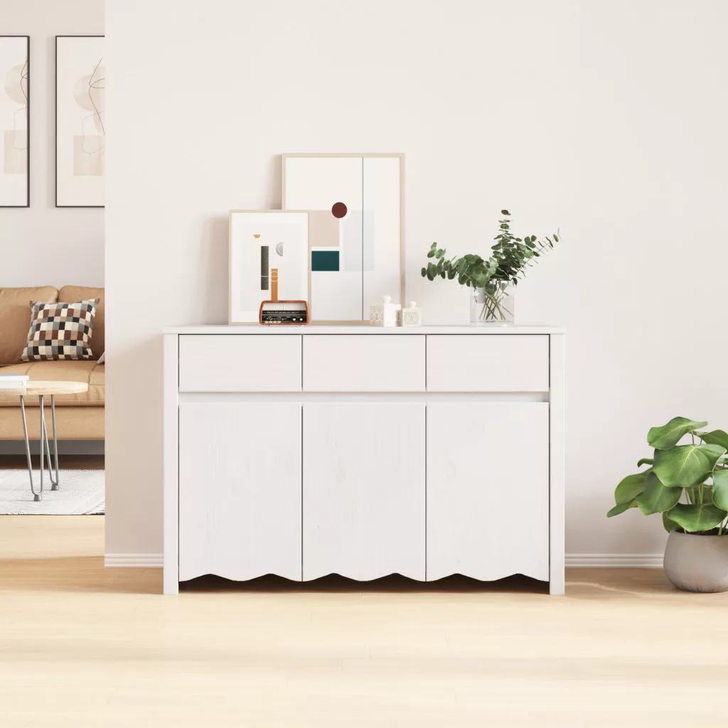 Oldalszekrény DRAMMEN" Fehér 114x43x75,5 cm Tömbfa Fenyő"
