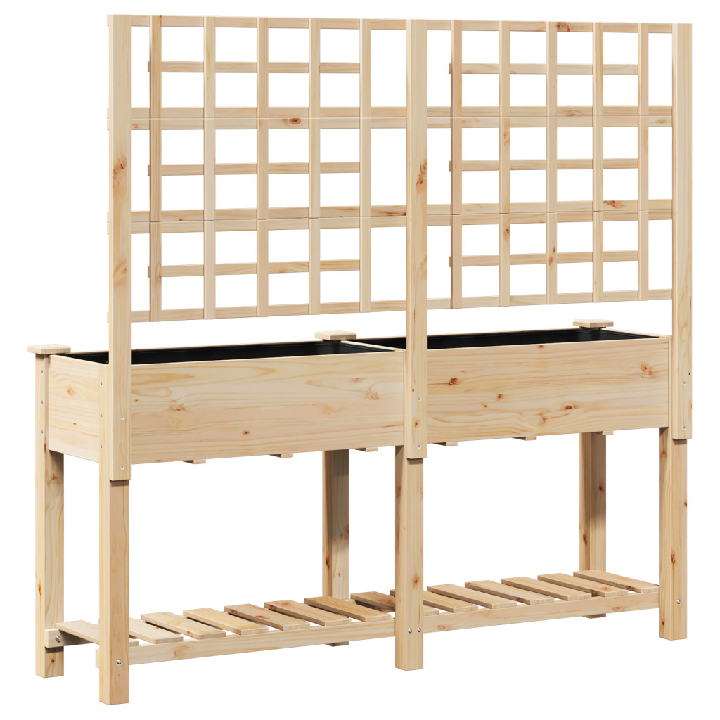 Kerti virágláda trellis-szel és polccal 161x43x152 cm Tömör fenyő