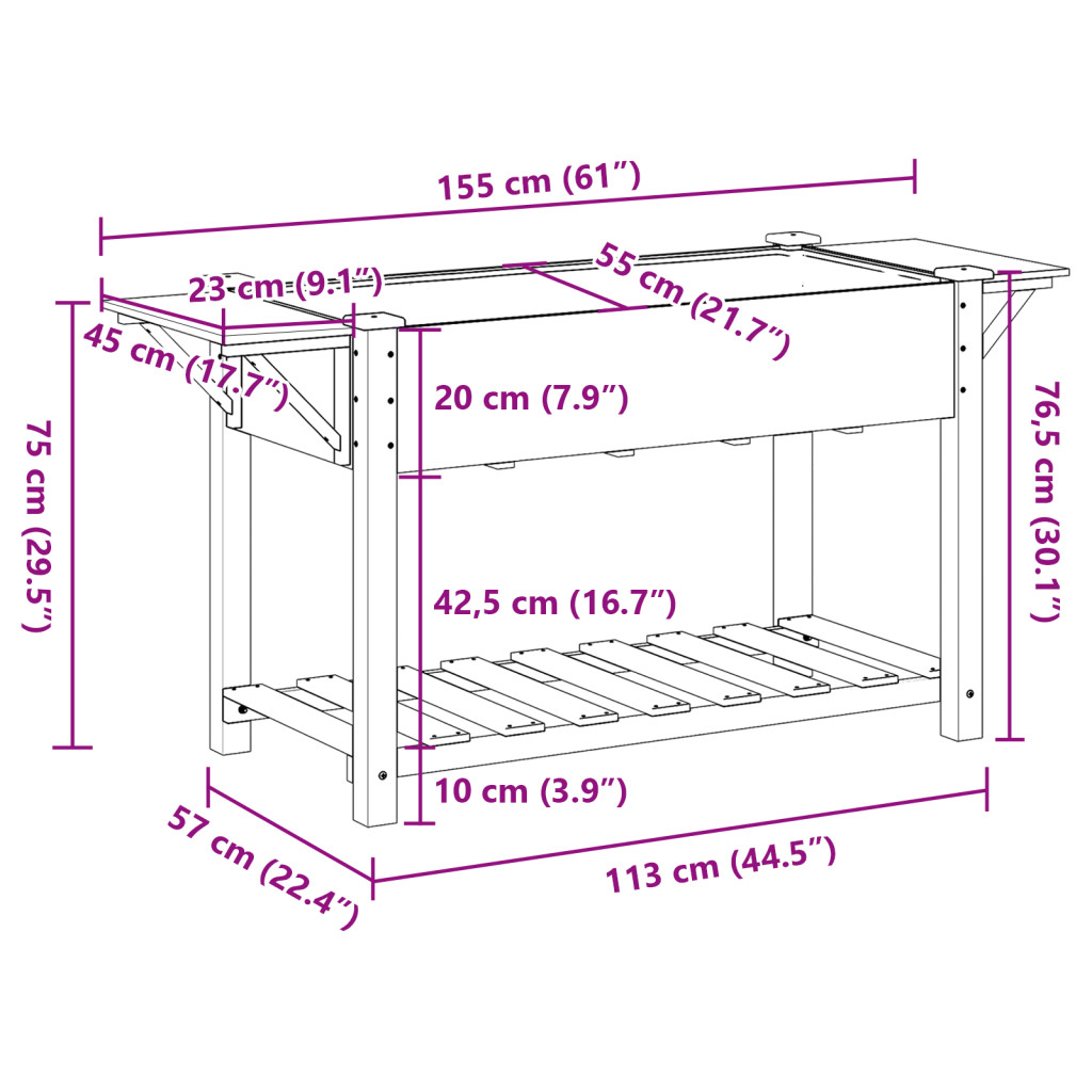 Kertészeti Ültető 155x59x76 cm Tömör Fenyőfából