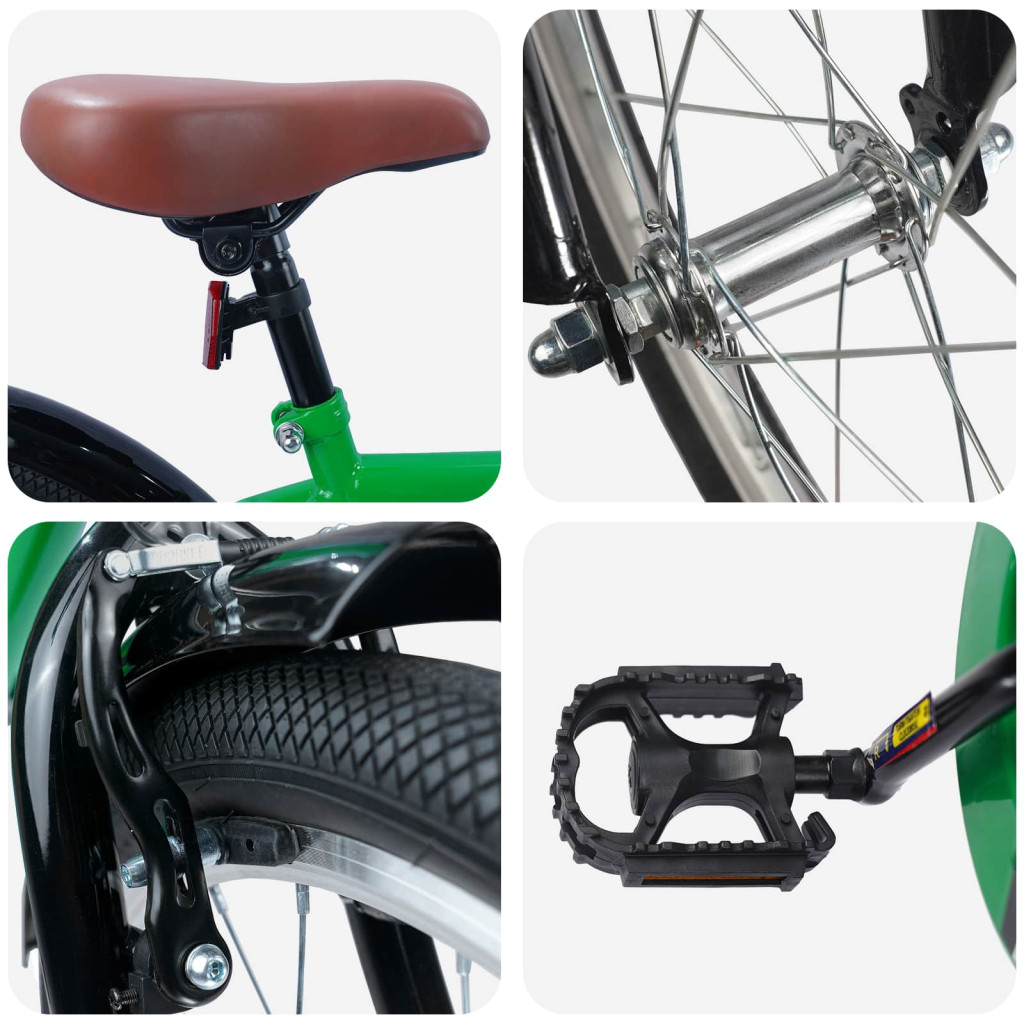 A Modern Gyerekkerékpár remek választás, mert egyszerre tartós és stílusos, ideális a kis felfedezők számára, akik szeretik a szabadban tölteni az időt. Klasszikus dizájnja ötvözi a hagyományos eleganciát a praktikus megoldásokkal, így biztosítva a megbízhatóságot és a vonzó megjelenést a gyerekeknek. Akár a játszótér ösvényein, akár a szomszédságban kerekezik, ez a kerékpár kellemes élményt ad a menő dizájn és masszív felépítés révén, ami kifejezetten a gyerekek igényeit szolgálja. Tartós acél váz: Szuper erős acélvázzal készült, így ez a bringa biztosítja a megbízható kerékpározás alapját. Az acél anyag rendkívüli tartósságot ad, idealis fiatal kalandokhoz és szabadtéri játékokhoz. Masszív felépítése bírja az aktív használat igényeit, garantálva a hosszú távú tartósságot és teljesítményt, hogy a gyerekek biztonságban és jól érezzék magukat. Állítható elemek: Az állítható kormányokkal és ülésekkel a kerékpár a gyerek növekedésével együtt változik, könnyen alkalmazkodva a különböző magasságokhoz. Az egyéni beállítás lehetővé teszi a kényelmes és ergonómikus kerékpározást, csökkentve a terhelés érzetét és élvezetesebbé téve a biciklizést. A tanulástól a barátokkal való versenyzésig, az állíthatóság biztosítja, hogy a kerékpár mindig megbízható társ maradjon. Egyszerű használat: A bringa egyszelepes kialakításával könnyedén használható, ami egyszerűsített kerékpározást nyújt a gyerekeknek. Ez a funkció áthidalja a sebességváltás nehézségeit, biztatva a fiatal bringásokat, és könnyíti a karbantartást. Ideális a kertben vagy a parkban töltöttátékhoz, anélkül, hogy a sebességváltás miatt kellene aggódniuk. Biztonság a középpontban: Klasszikus fékrendszere hatékonyan fékez, ami elengedhetetlen a biztonsághoz. Az intuitív tervezés lehetővé teszi a gyerekeknek, hogy könnyen fékezzenek, nyújtva nekik a kontrollt a kerekezés során. Az acél felnikkel együtt megbízható tapadást ad hirtelen megállóknál vagy csúszós körülmények között. Könnyű karbantartás: Ennek a bringának a karbantartása a gondos tervezés és tartós alkatrészek miatt egyszerű. Hűvös és száraz helyen tárolva biztosítja a tartósságot, és néha elég csak a fő csavarokat és részeket ellenőrizni, hogy a működése sima maradjon. Így a kerékpár mindig remek állapotban lesz, kész a következő kalandra.