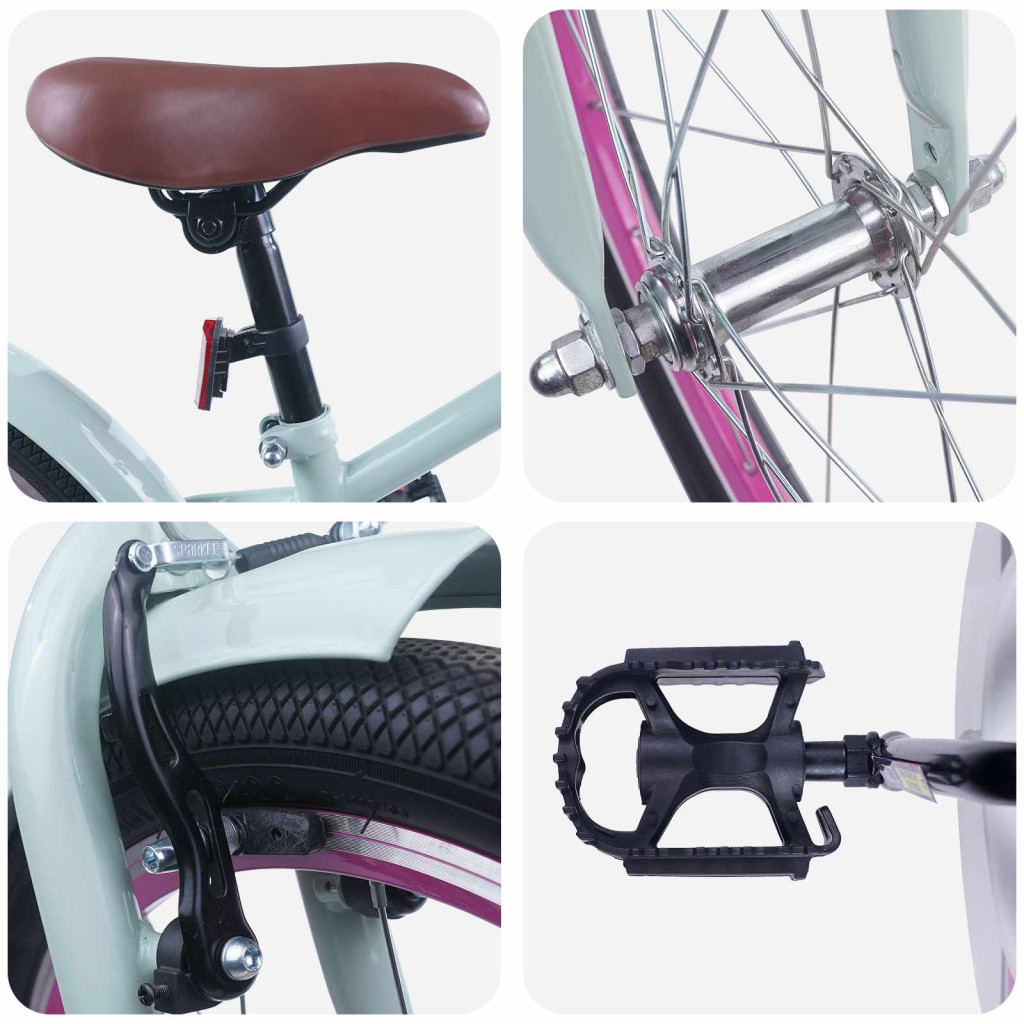 Ez a karcsú és sokoldalú gyerekkerékpár klasszikus, időtlen stílusban készült, amit a funkció és a divat szempontjából is megállja a helyét. Az állítható kormány és ülés biztosítja a kényelmet és a biztonságot a fiatal bringásoknak. Acél tartósság: Ez a bicikli robusztus acélból készült, ami megbízható, szilárd vázat ad, ellenállva a kihívásoknak. Az anyag hosszan tartó, így előnyös a növekvő gyerekeknek. Az acél szerkezetnek köszönhetően, a kerékpár bármilyen környezetben megállja a helyét, miközben hozza a teljesítményt. Állítható kényelem: Az állítható kormány és ülés révén a kerékpár biztosítja, hogy a gyerek méretéhez igazodjon. Az anatómiai nyereg kényelmet nyújt, így a tekerések simák lesznek, segítve a gyerekek ergonómiai szükségleteit. Ez a rugalmasság különösen hasznos a kezdő és tapasztalt fiatal bringások számára is. Klasszikus fékrendszer: A bicikli klasszikus fékkar-rendszerrel van felszerelve, ami gyors és megbízható megállást garantál. Ez különösen fontos a fiatal kerékpárosoknak, akik biztonságosan fejlődnek a tekerési képességeikben. Sárvédő jelenléte: A sárvédők védenek a fröcskölődéstől, így a bicaj és a gyerek ruhája tiszta marad az utazások során. Ez a funkció nemcsak a praktikusságot növeli, hanem a kerékpározás élményét is fokozza, tisztán tartva a biciklit. Karbantartási utasítások: Az egyszerű karbantartás biztosítja, hogy a bicikli hosszú távon is megmaradjon. A kerékpárt hűvös, száraz helyen tárolva elkerülhetők a kopások. Ezek az egyszerű tippek fenntartják a kerékpár minőségét és kinézetét hosszú ideig. Figyelem! A világításra, fényvisszaverőkre stb. vonatkozóan helyspecifikus jogi előírások lehetnek érvényben. Kövesse a helyi és jogi előírásokat. Ne közlekedjen a kerékpárral forgalmas és közutakon. Mint minden mechanikus alkatrész, a kerékpár is kopásnak és nagy terhelésnek van kitéve. A különböző anyagok és alkatrészek eltérő módon reagálhatnak a kopásra vagy a terhelés okozta fáradásra. Ha egy alkatrész tervezett élettartama lejárt, az hirtelen meghibásodhat, ami sérüléseket okozhat a kerékpárosnak. Bármilyen repedés, karcolás vagy színváltozás a nagy terhelésnek kitett területeken azt jelzi, hogy az alkatrész vagy a teljes kerékpár élettartama lejárt, és ki kell cserélni. Kompozit alkatrészek esetében az ütközés okozta sérülések a felhasználó számára láthatatlanok lehetnek, ezért a gyártónak ismertetnie kell az ütközés okozta sérülések következményeit, és hogy ütközés esetén a kompozit alkatrészeket vissza kell küldeni a gyártónak ellenőrzésre, vagy meg kell semmisíteni és ki kell cserélni. Mindig viseljen bukósisakot! Ne végezzen akrobatikus mozdulatokat és ne ugorjon!