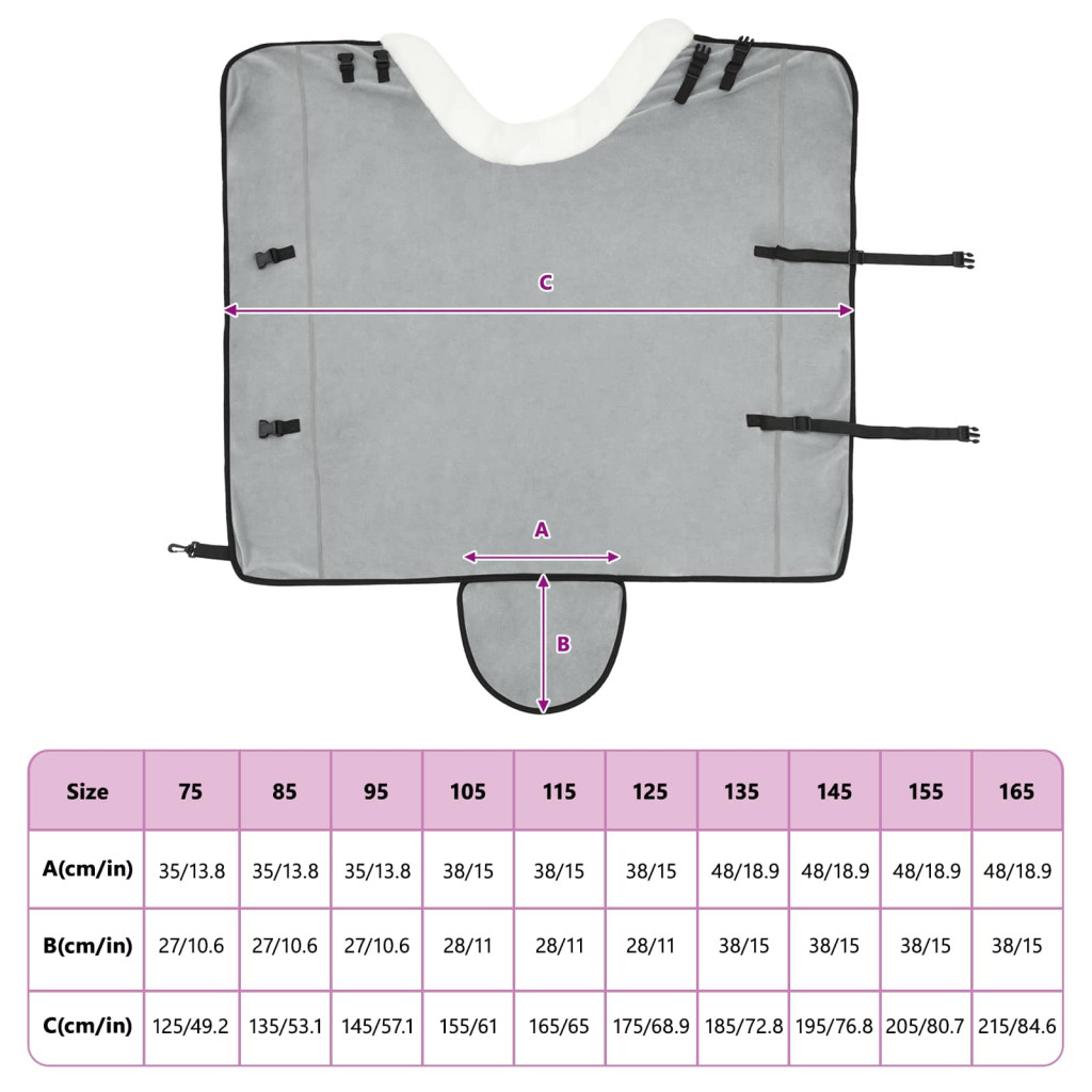 Ez a ló takaró úgy lett tervezve, hogy melegen tartsa a lovakat a hűvösebb időszakokban. Modern stílusával és letisztult vonalaival a funkcionalitás és az esztétika tökéletes kombinációját nyújtja. Akár egy hűvös téli napon, akár hosszú munkanap után pihen a ló, ebben a fleece takaróban mindig kényelmesen marad. Praktikus kialakítása azt is lehetővé teszi, hogy különböző szabadtéri körülmények között is használható legyen, így a meleg és a stílus mindig biztosított. Minőségi poliészter: Prémium anyagból készült, ez a ló takaró kifejezetten puha és meleg. A poliészter rugalmassága végig biztosítja a lovak mozgási szabadságát, így nem akadályoz semmiben. Kiváló szigetelésével még a legnagyobb hidegben is melegen tartja a lovadat, így ideális szabadtéri használatra. Funkcionális csatok: Az állítható csatok személyre szabott illeszkedést adnak, így bármilyen méretű lóhoz megfelelően alkalmazkodik. A biztonság és a kényelem érdekében a csatok csökkentik a takaró elmozdulásának kockázatát, amikor a ló aktív. Ez különösen megnyugtató, ha a lovad a szabadban van, mert tudod, hogy védve van. Sokoldalú huzat: A levehető huzat megkönnyíti a takaró karbantartását. A huzat egyszerűen leválasztható és mosógépben 30 fokon mosható, így mindig tiszta és friss marad. Így több időd marad a lovaddal való foglalkozásra, nem a takaró tisztítására. Időjárásálló kivitel: Ez a takaró szélálló, így megvédi a lovadat a zord időjárástól. A tartós felépítése ellenáll a viharos időjárásnak, biztosítva, hogy a lovad kényelmesen és védetten érezze magát. A szigetelési képessége miatt megbízható társ a téli időszakban. Praktikus tárolás: Az összecsukható kialakítás idealizálva van a helytakarékos tárolásra, ha éppen nincsen szükség a takaróra. Gyorsan összecsukható, így könnyen elfér a szűk helyeken is. Mindig készen áll a következő hideg napokra.