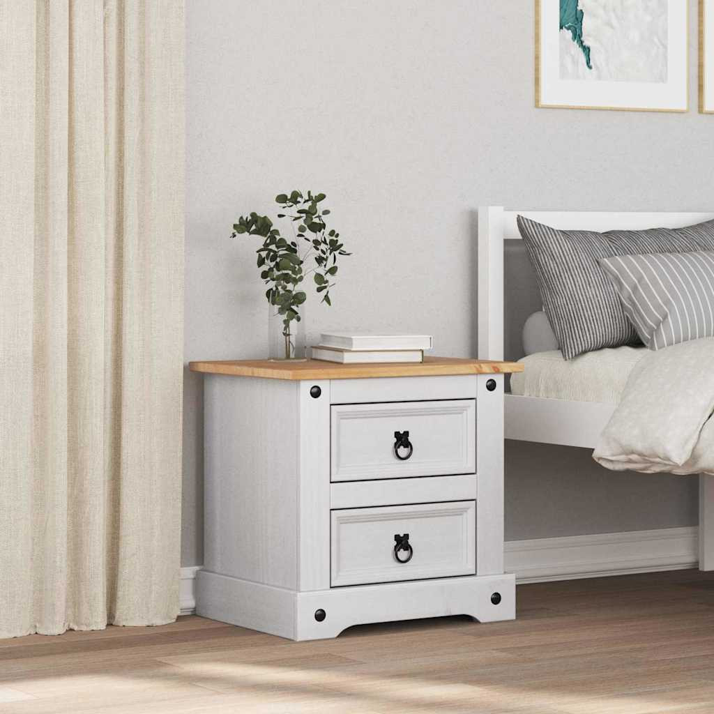 Éjjeli asztal fiókkal Fehér 53 x 39 x 47 cm Tömör fenyőfa