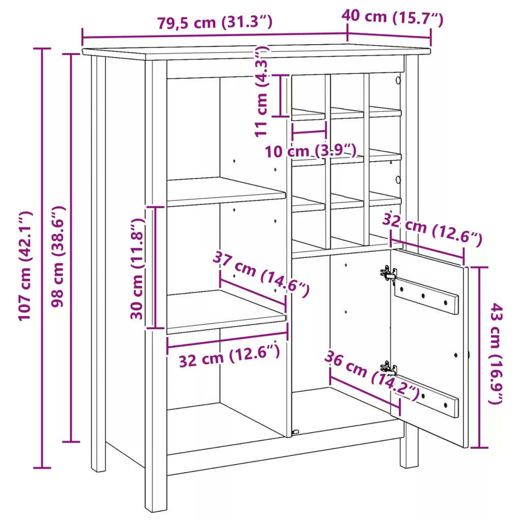 A modern boros szekrény ötvözi a funkciót és az eleganciát, miközben megoldást kínál a borgyűjteményed rendszerezésére és bemutatására. Tömör fenyőfából készült, ami a meleg, mézbarna árnyalatával jól illik bármilyen modern otthonhoz. Legyen szó konyháról vagy nappaliról, letisztult, minimalista dizájnja miatt zökkenőmentesen beépíthető bármilyen elrendezésbe. Belső használatra készült, ideális borrajongóknak, akik szeretnék feldobni a szórakoztató helyeiket. Tömör fenyőfa konstrukció Robusztus, tömör fenyőből készült, szóval időtállónak lett tervezve. A gazdag mézbarna felülete egyedi eleganciát ad otthonodnak, és biztosítja a tartósságot. Moduláris tárolási lehetőségek Különféle rekeszekkel, polcokkal és fiókokkal rendelkezik, így sokoldalú tárolási megoldás a palackjaidnak, poharaidnak és egyéb kiegészítőidnek. A dizájn úgy van kitalálva, hogy különböző palackméreteket el tudjon helyezni, ami segít rendben tartani a gyűjteményedet. Letisztult és minimalista dizájn A téglalap alakú formája és zéró díszítése a modern stílust tükrözi, jól illik a kortárs környezetekhez. Tiszta vonalai és praktikus dizájnja nagyszerű középpontot alkot a nappaliban vagy konyhában, ahol mind a formája, mind a funkciója elismerést kap. Könnyű összeszerelés szükséges Az összeszerelés szükséges, de minden eszközt és világos utasítást megkapsz, így egyszerű lesz. Az érintett szerszámok, mint a csavarhúzó, a mérőszalag és a kalapács is benne van, így más szerszámra nincs szükség. Könnyű karbantartás Tartsd meg a szekrény szép kinézetét, csak töröld le száraz ruhával, és kerüld a durva vegyszereket. Ez a könnyű karbantartás biztosítja, hogy még sokáig szép marad a darabod, és évekig funkcionál, jó benyomást keltve.